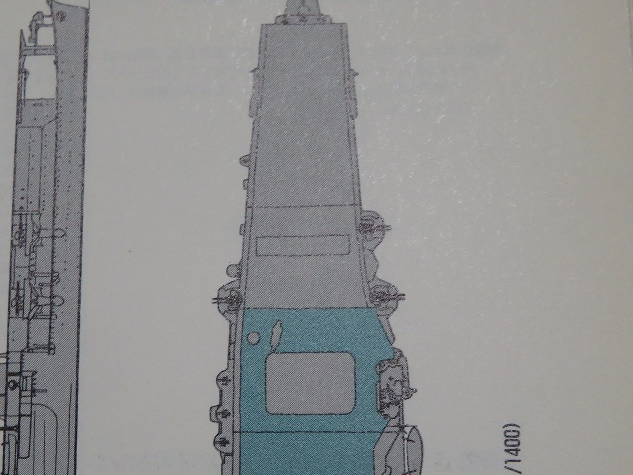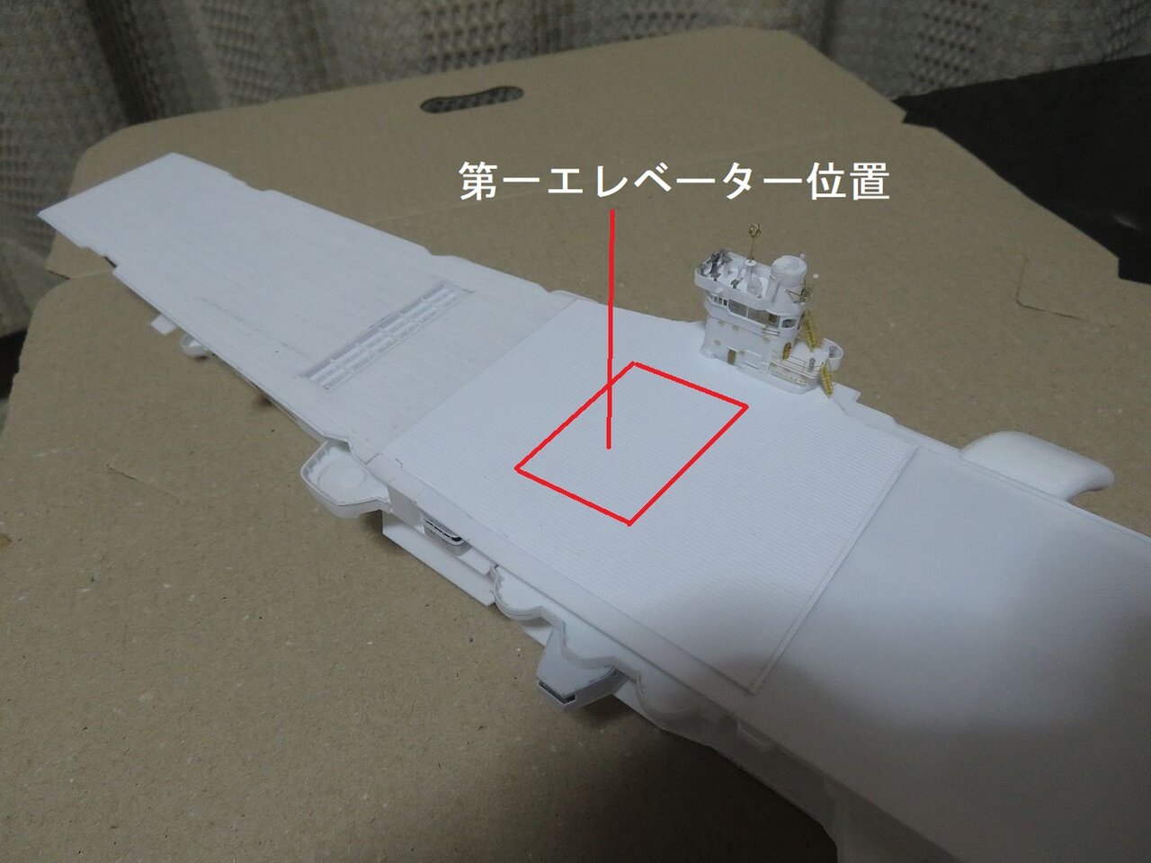 第一エレベーターは艦橋の真横になります。今日は時間が有りませんでしたが明日にでもこの赤線部分を切除して第一エレベーターを製作します。