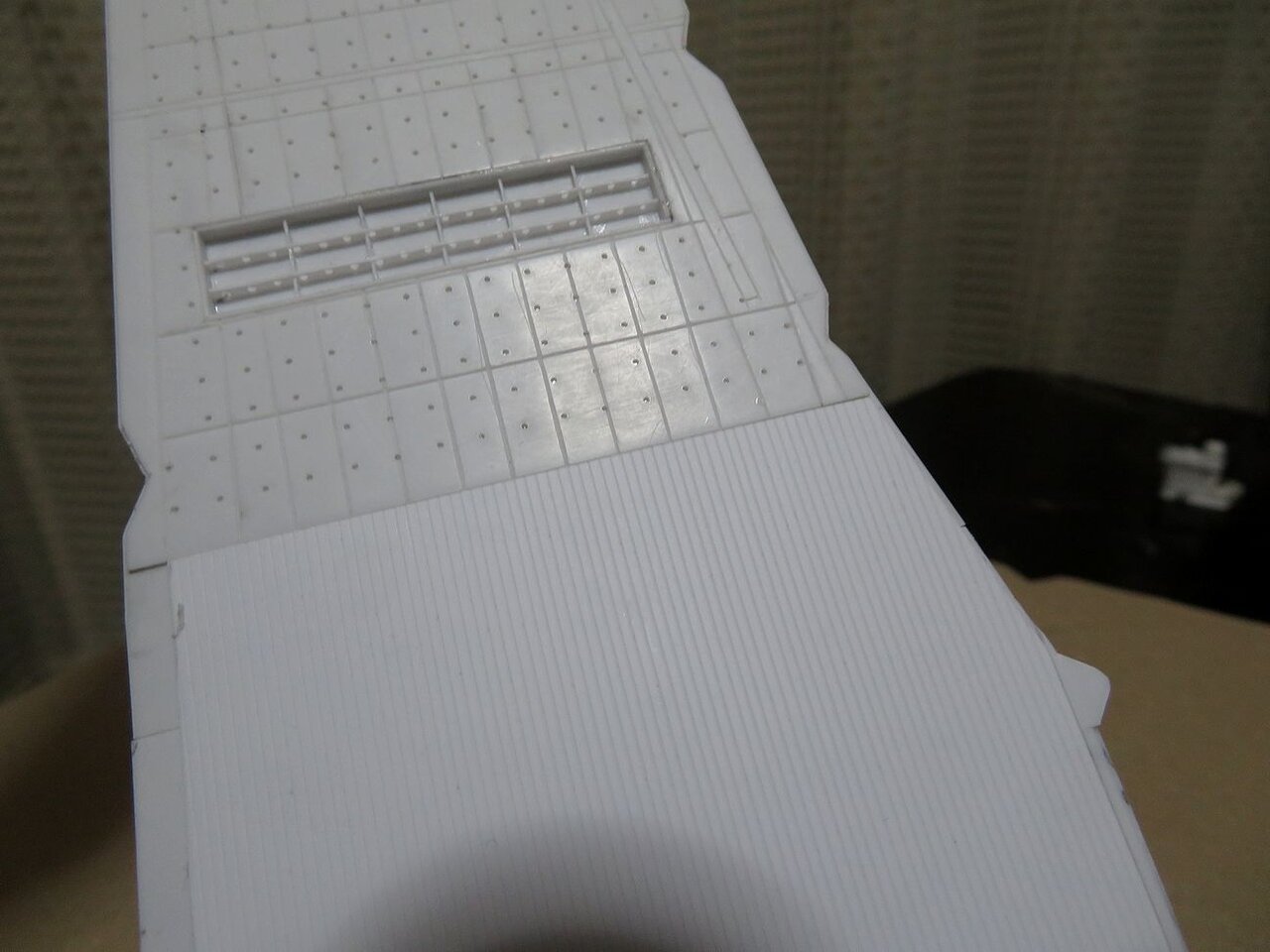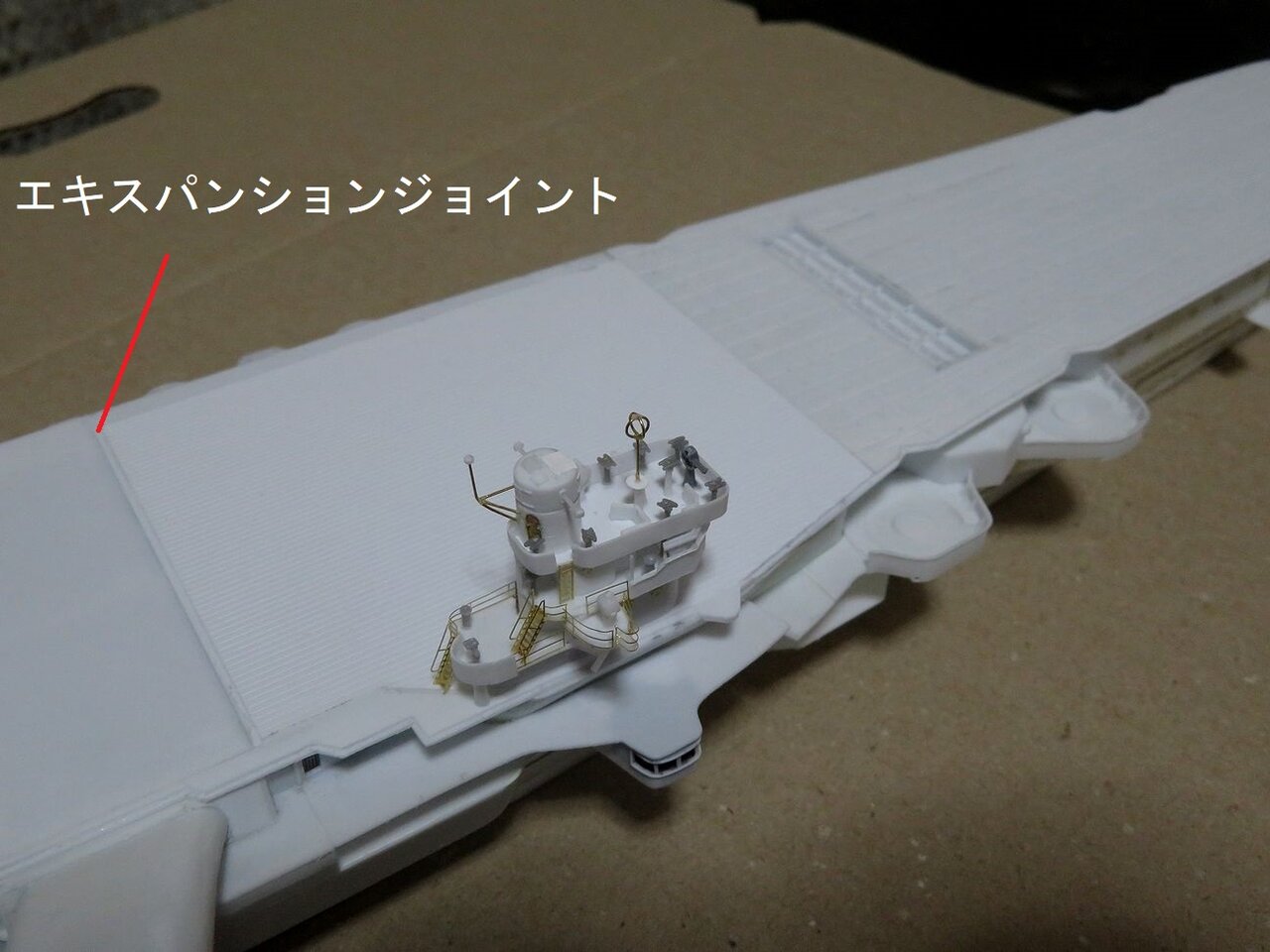 1/350の空母模型はかなりの大きさになりますので飛行甲板は3分割して製作しています。