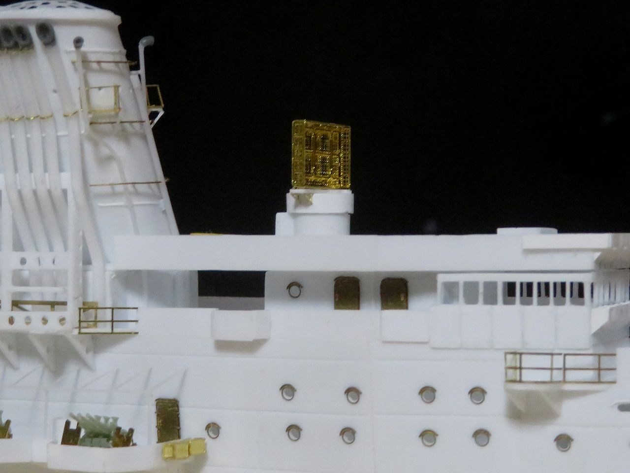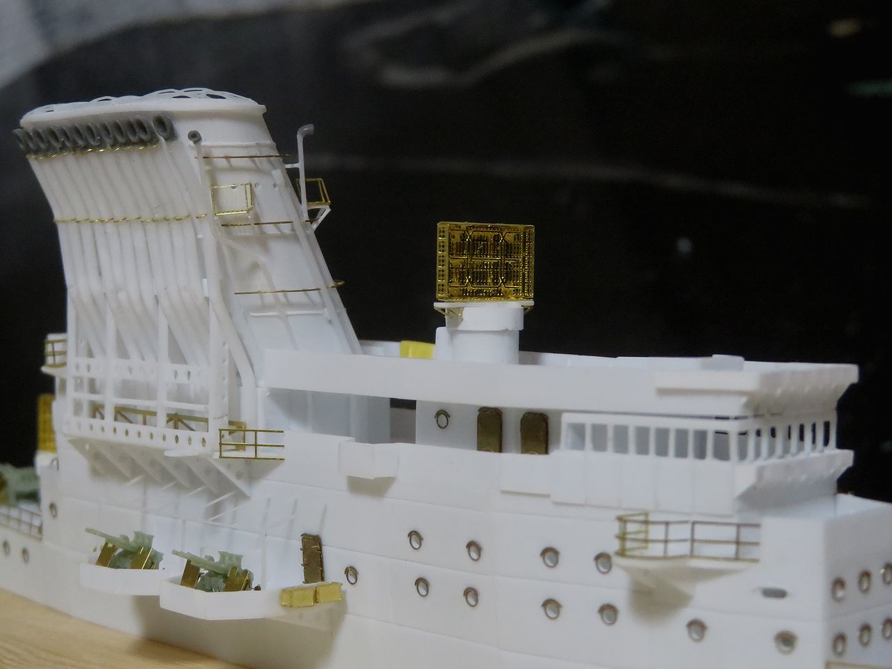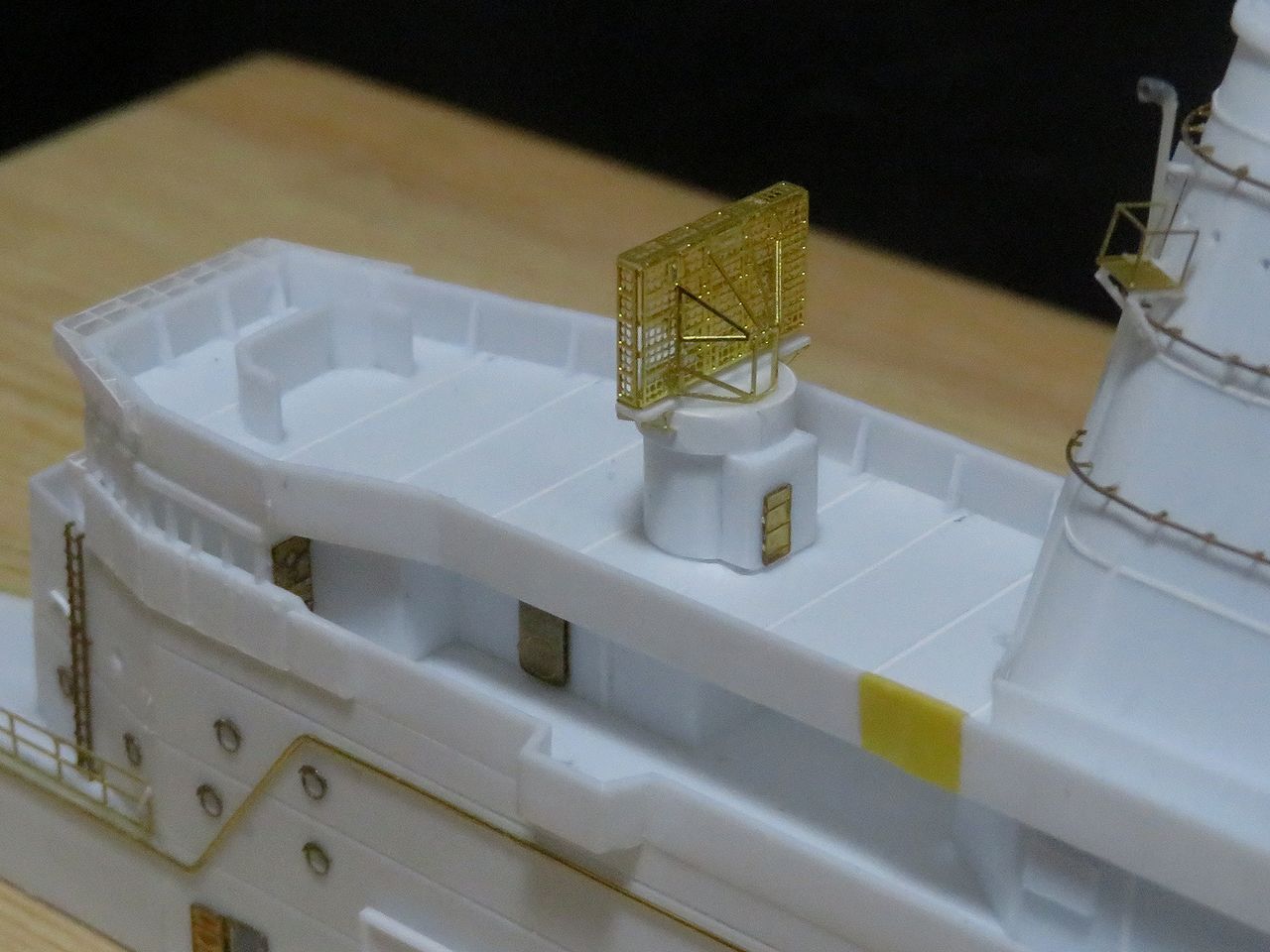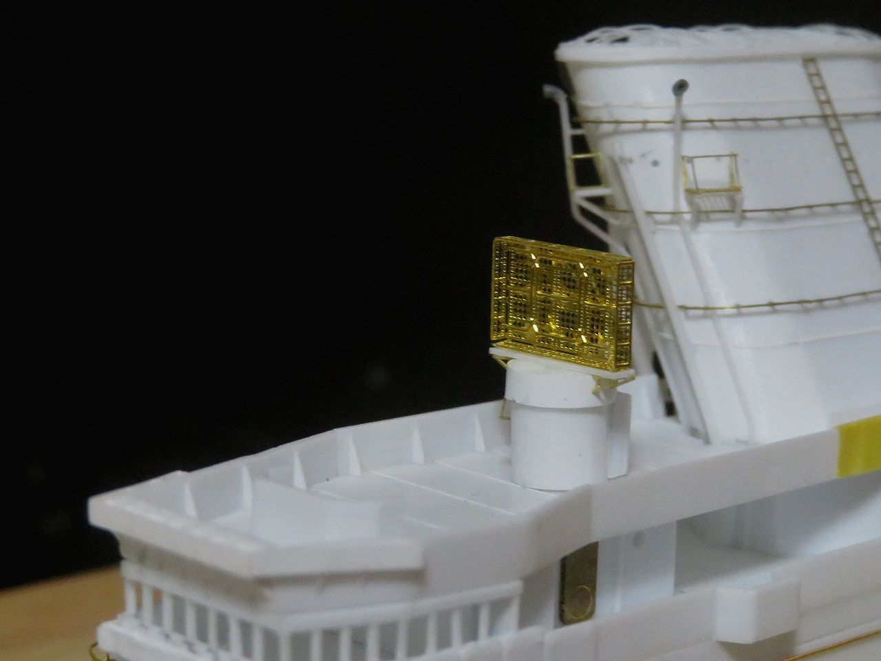 2022年11月30日 21号電探をもういっちょ!! 350しなの同じ作業をするのはあまり得意ではないんですけど、21号電探をもう一つ作りました。作り方は後部電探と全く同じでプラで組んだベースにレインボーのエッチングを組み合わせたものです。そして出来上がった電探を防空指揮所に(仮)設置してみましたよ!これで残された大物パーツはメインマストだけになりました。いよいよここまで来ましたねえ・・・。人気ブログランキング参加中です。宜しければクリックお願いいたします。 「1/350 信濃」カテゴリの最新記事 < 前の記事次の記事 > コメント コメントフォーム 名前 コメント 記事の評価 リセット リセット 顔 星 情報を記憶 コメントを投稿する