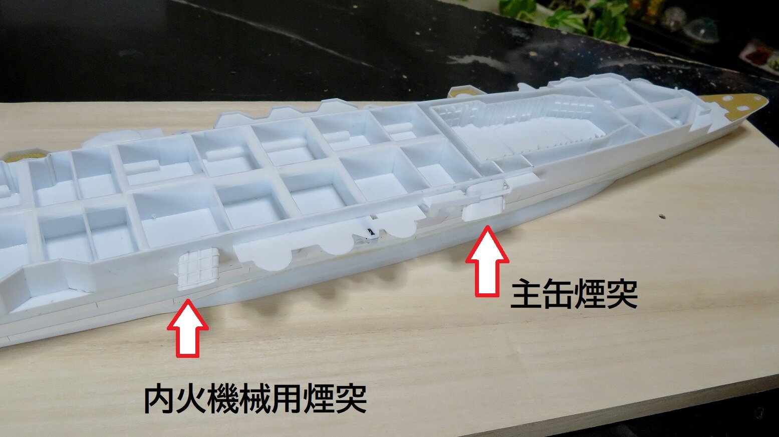 このような煙突配置は千歳型の特徴であり作っていて面白い部分ですね。
