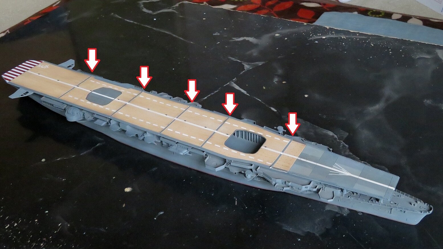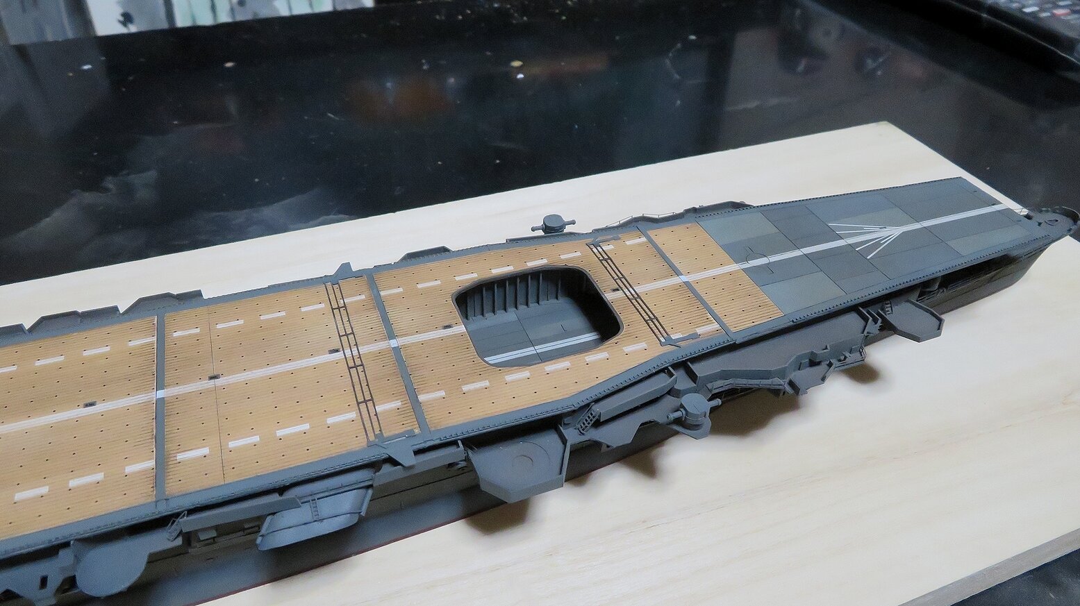 つまり飛行甲板のブロックとブロックの間にはわずかな隙間を設けているということになります。