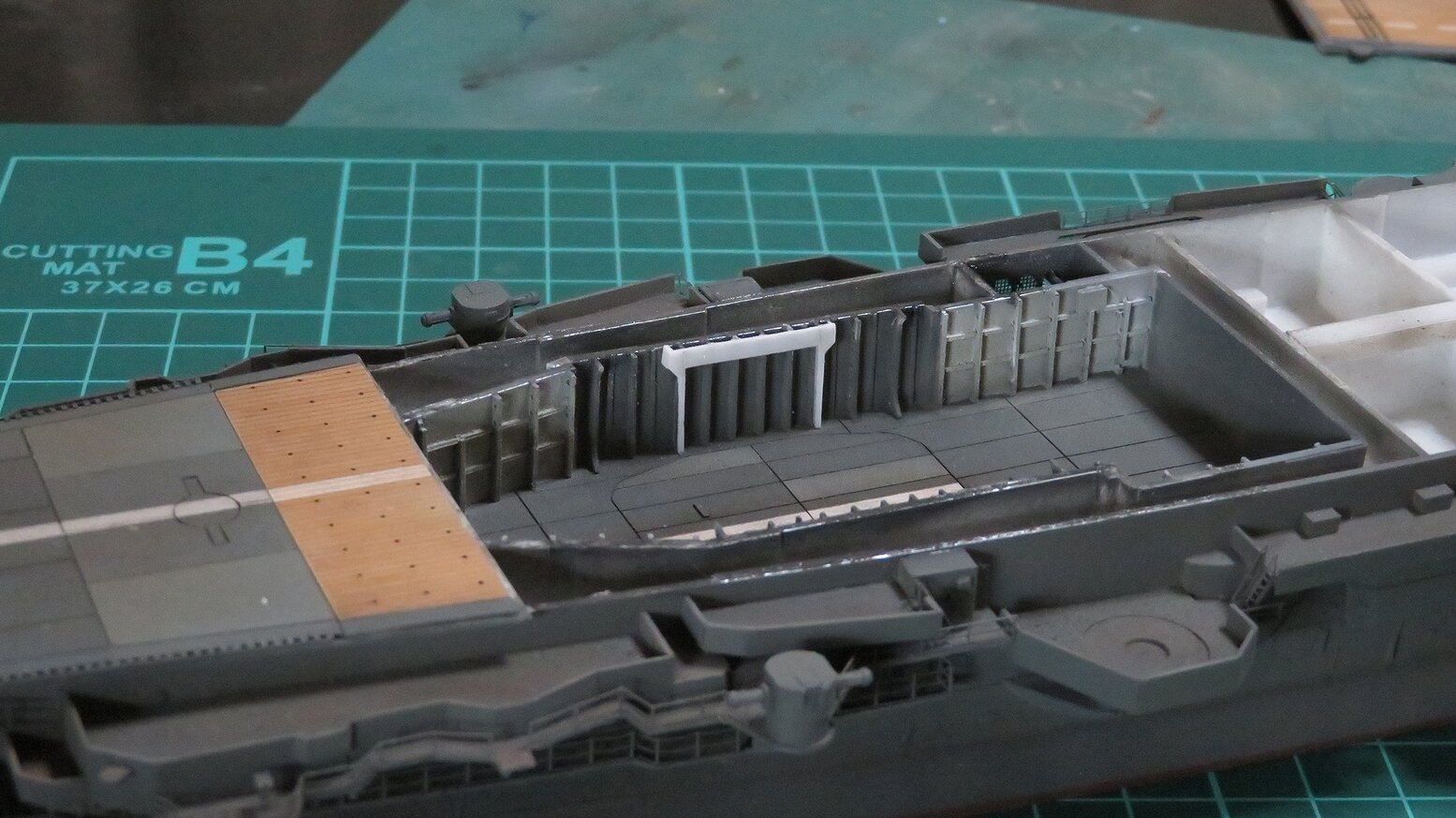 まだ無塗装ですが甲板上に置いて様子を見ます。