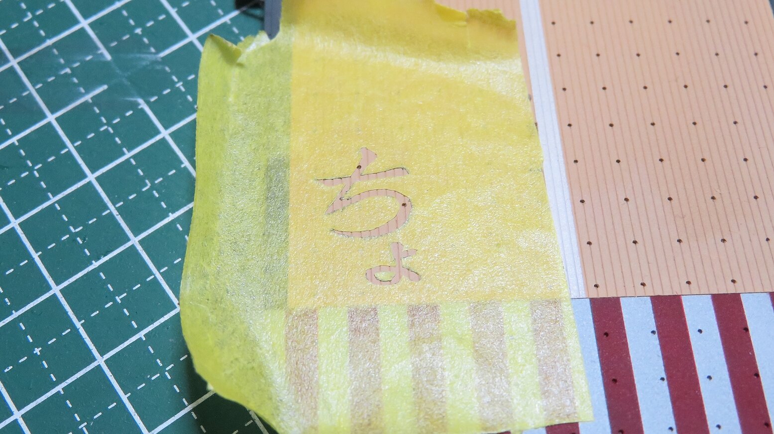 まず、マスキングテープに鉛筆で下書きして、デザインナイフで慎重に切り抜きます。