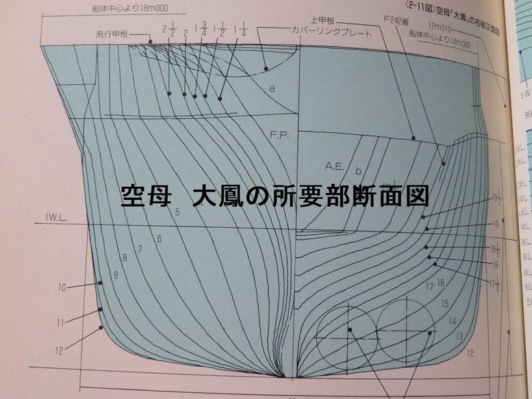 次にお見せするのは私が以前製作した空母「天城」の正面線図から切り出したフレームです。