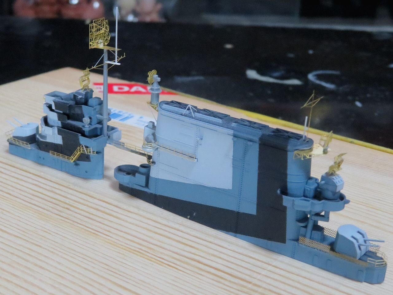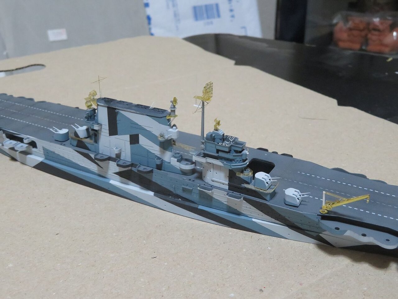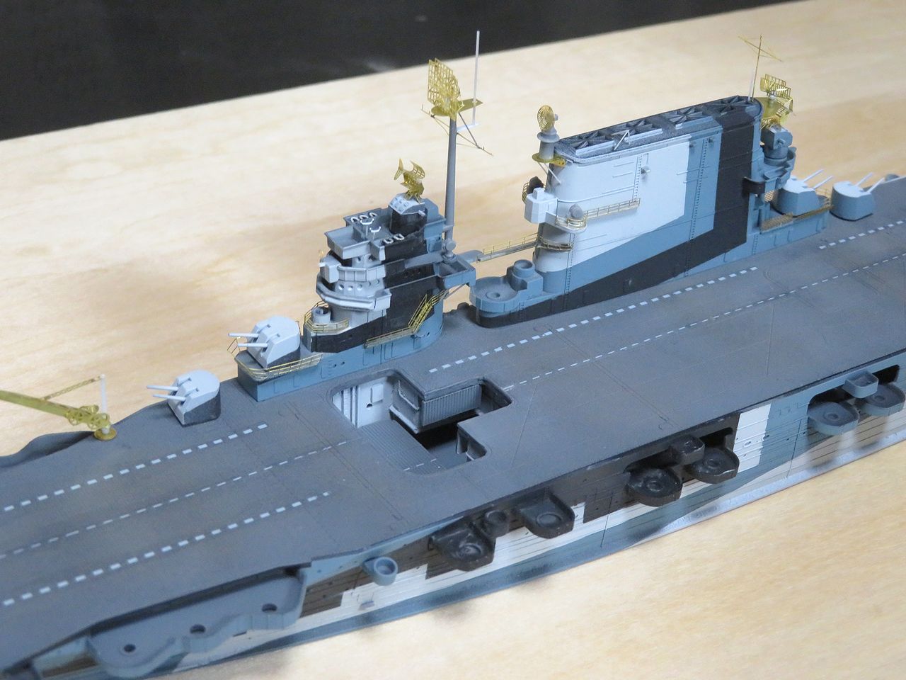 さらに艦橋トップの防空指揮所ですが日本空母ほど複雑ではないもののちょっとしたアイテムが目を惹きます。