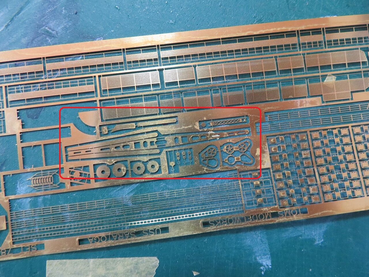 ここはエッチングパーツにも用意されていますのでこちらを使いましょう。この赤枠部分ですね。
