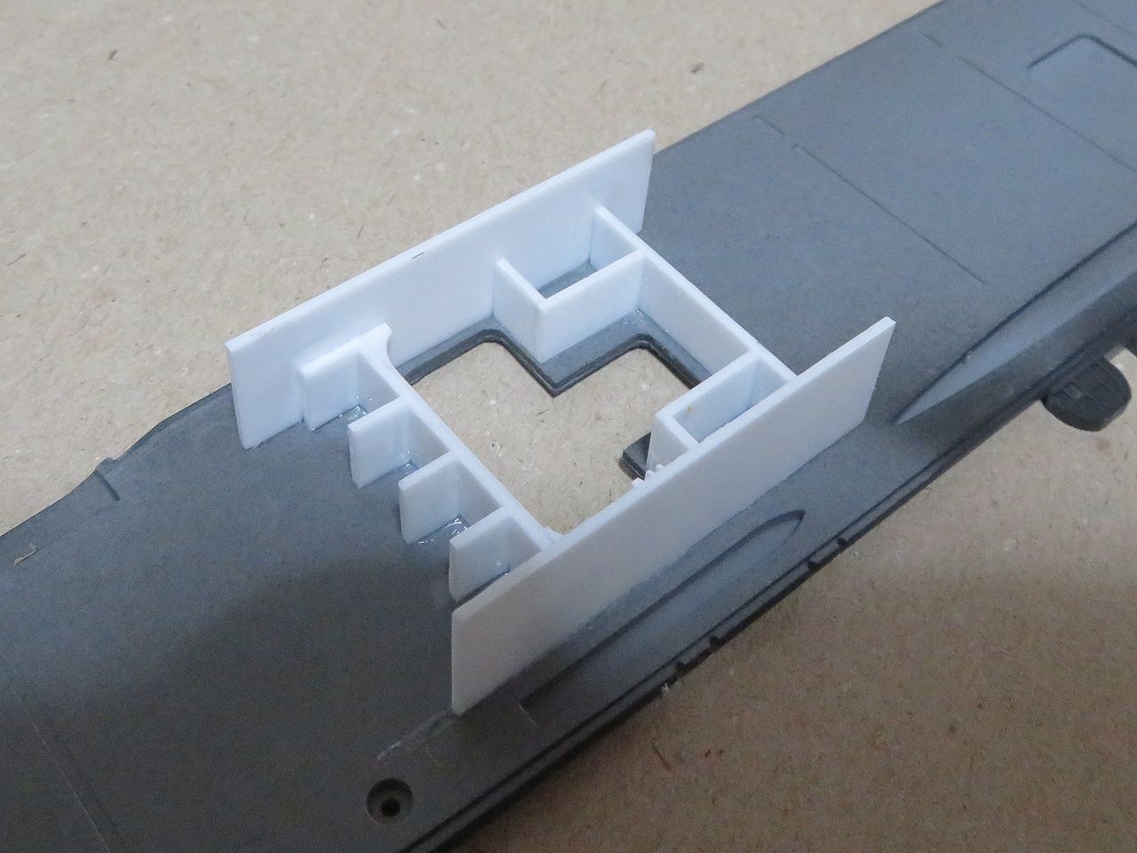 以前も説明しましたが、このキットはこのようにエレベーターは閉じた状態で成型されています。