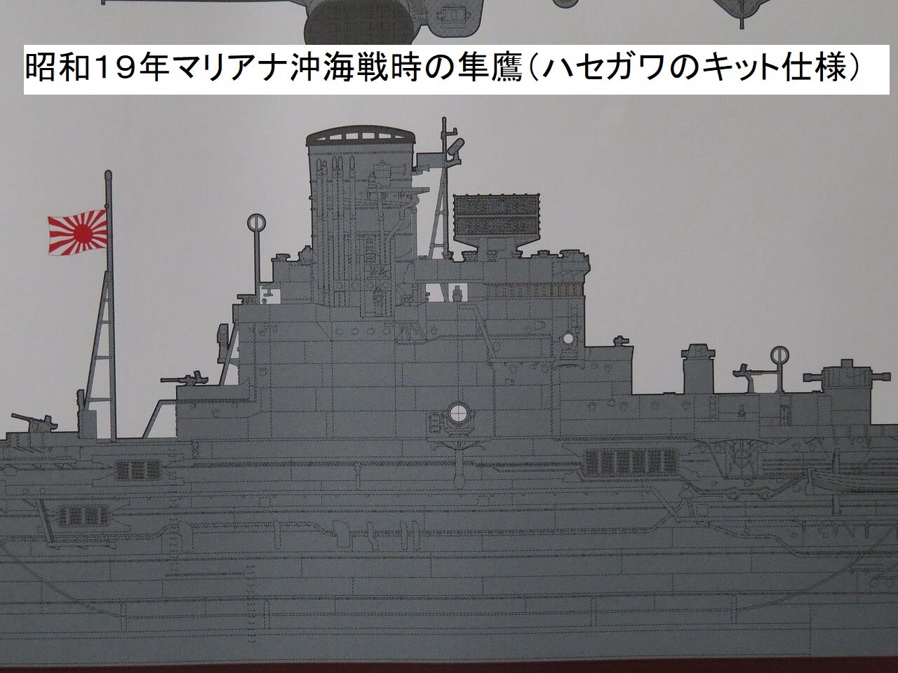 このハセガワの1/350 隼鷹は昭和19年6月のマリアナ沖海戦時をモデルにしています。