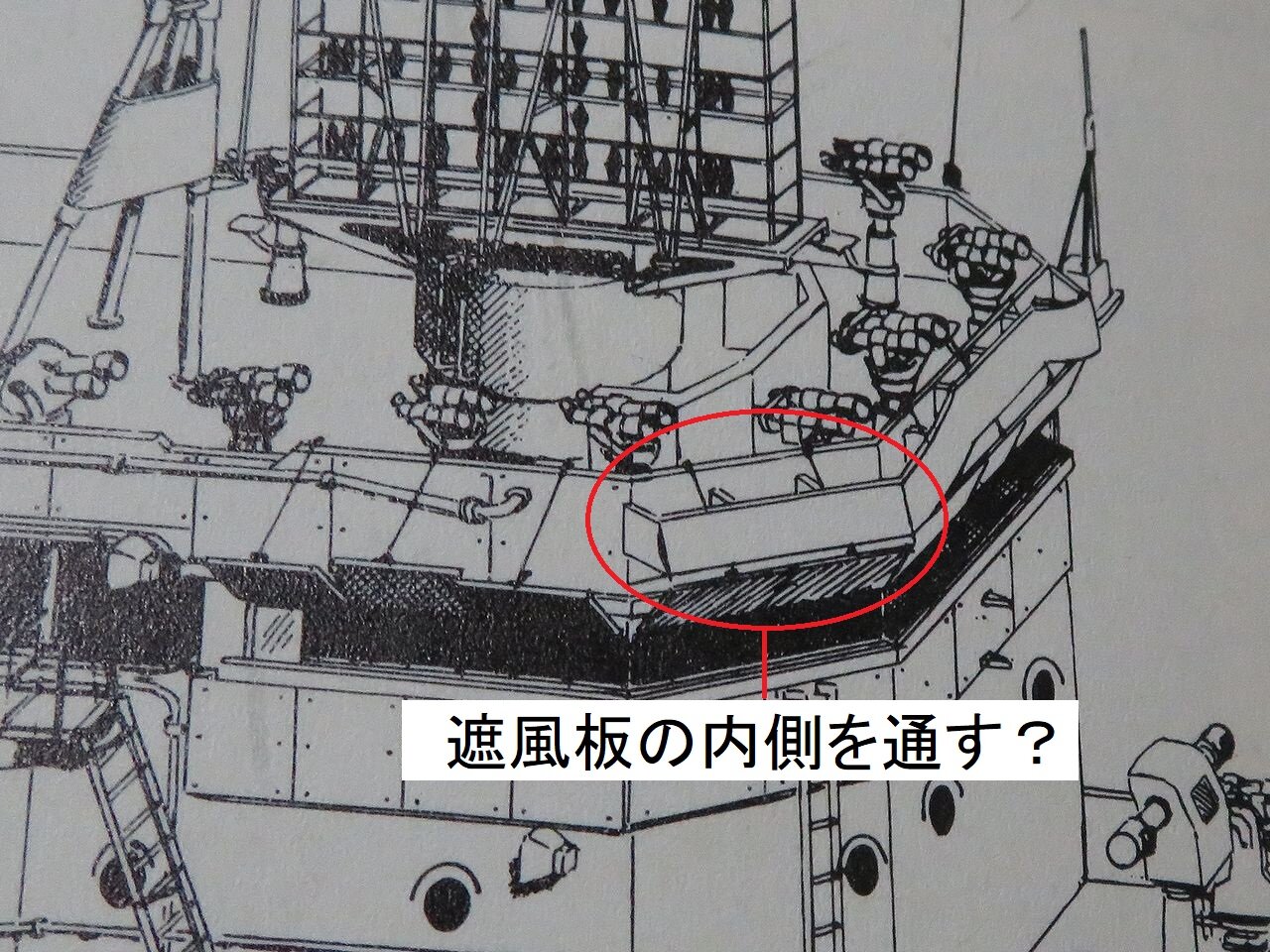 全体的には多くの変更点、追加点が有るのですが、艦橋だけでも以下の通り数か所の改造すべき点があります。