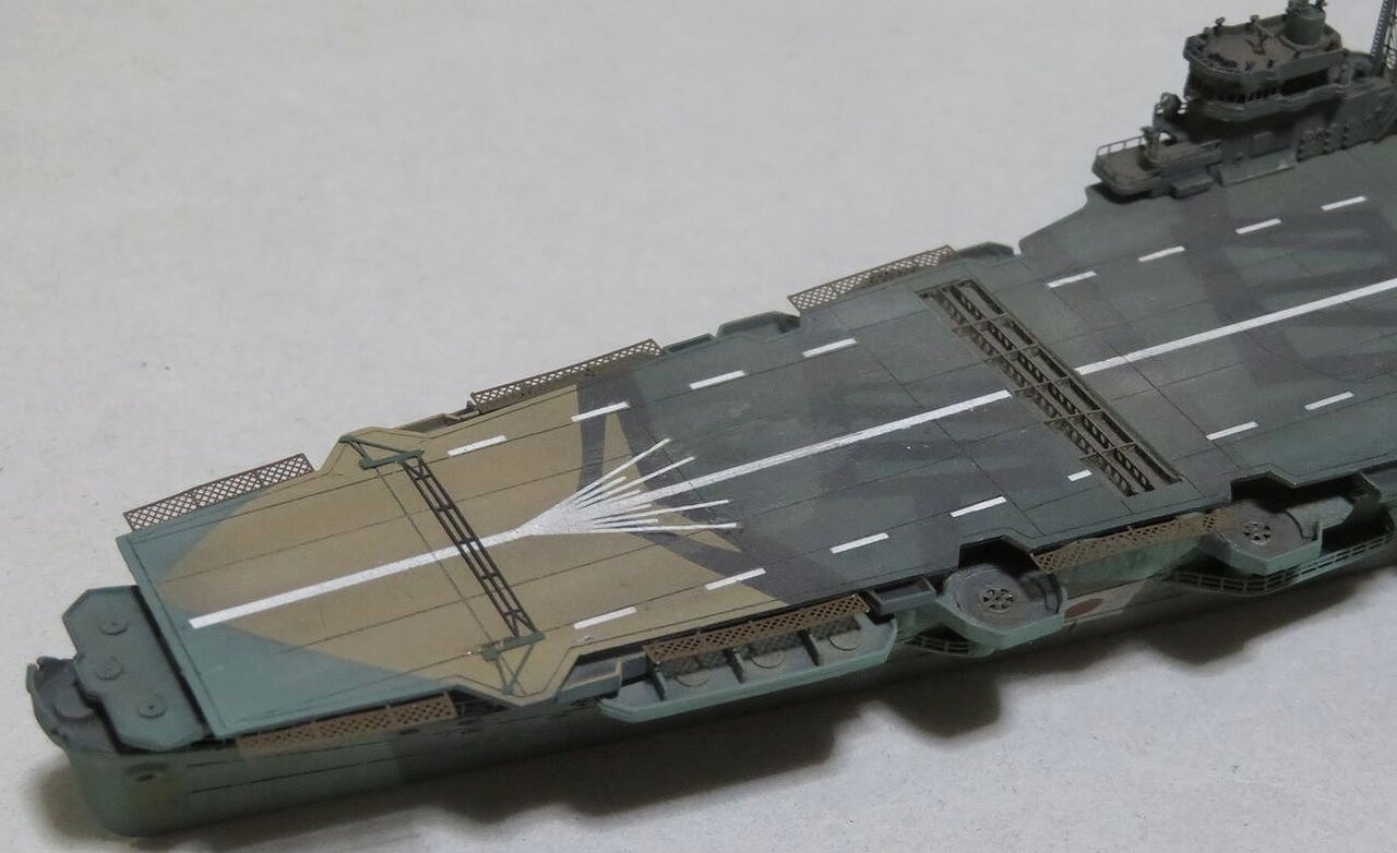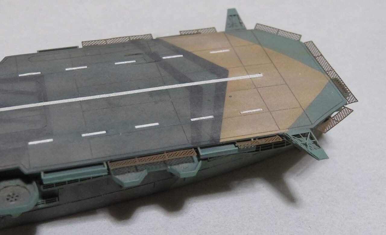 まずこれが後部飛行甲板に通常の迷彩塗装を入れたものです。