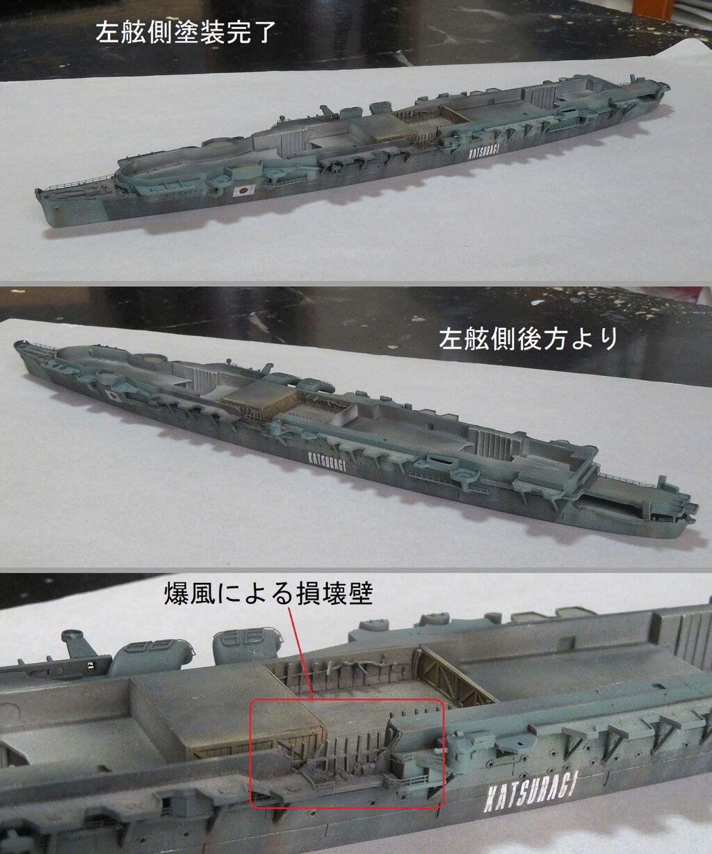 左舷側は写真一番下の「爆風による損壊壁」の表現が最大のポイントですね。