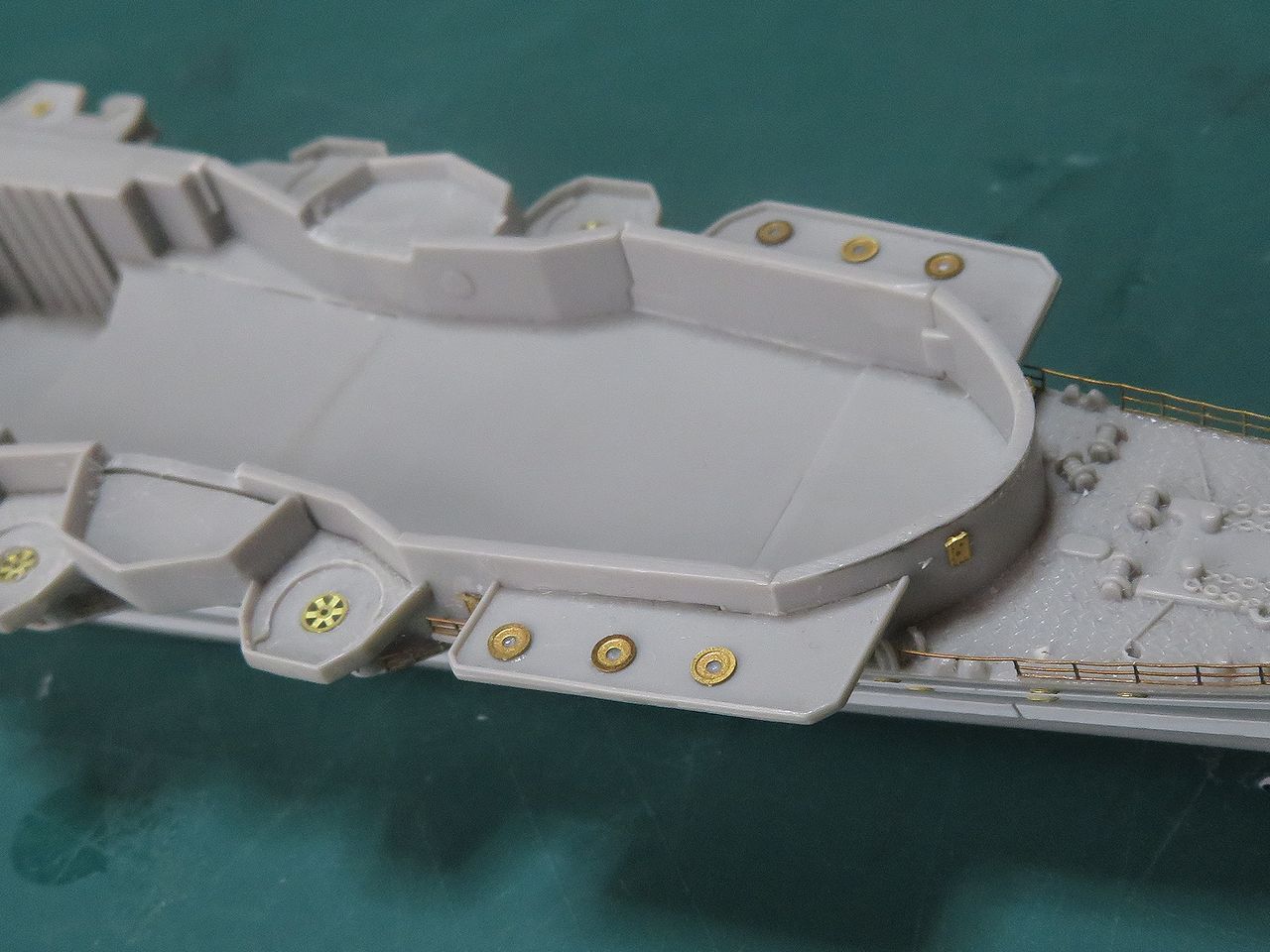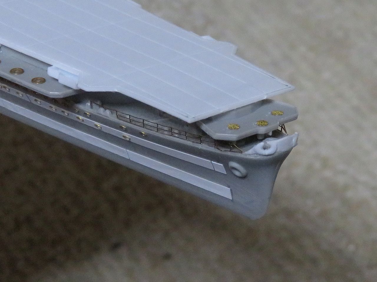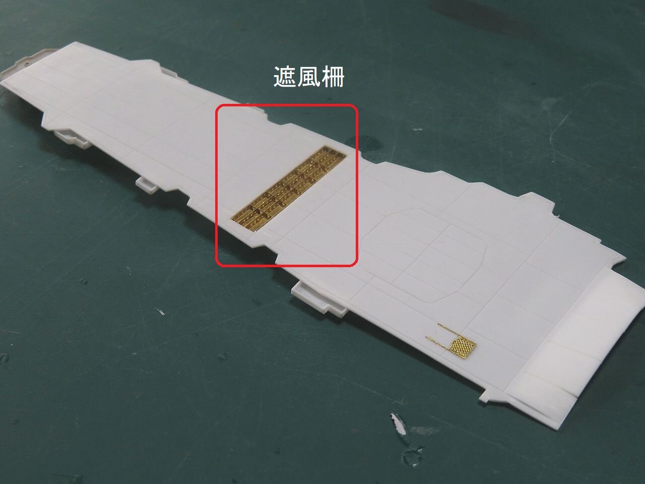 また飛行甲板の遮風柵もせっかくエッチングパーツがありますので組み込んでおきます。