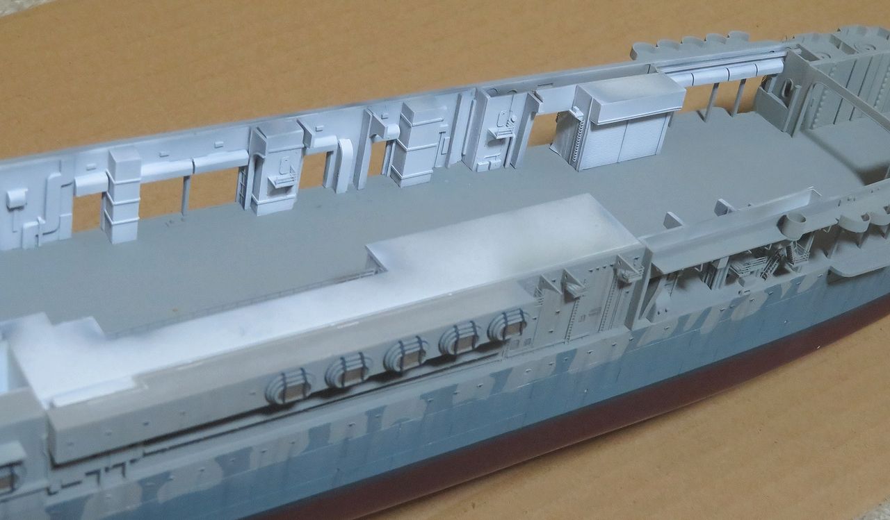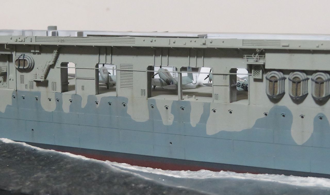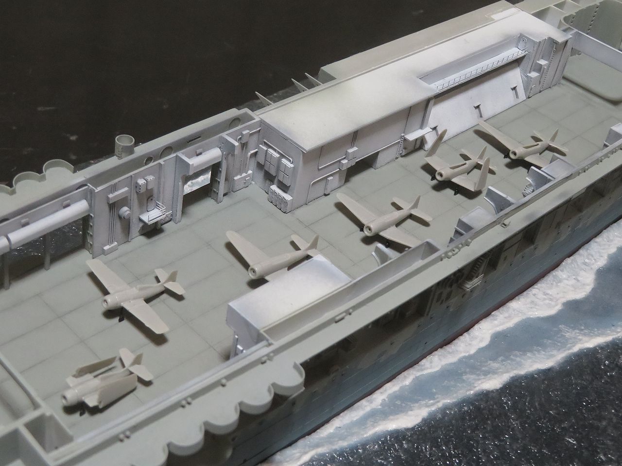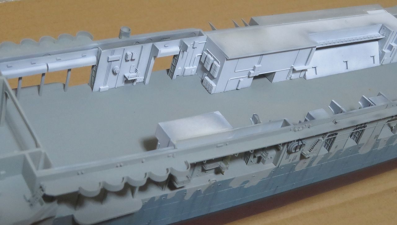 飛行甲板が乗るともっと暗くなりますのでこんなに鮮明には見えなくなりますが、光量次第ではなかなか面白い表現になると思います。