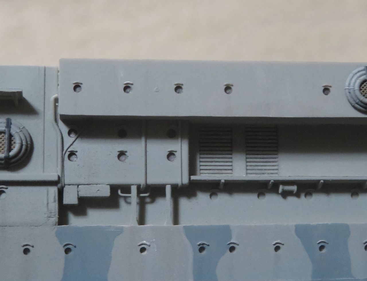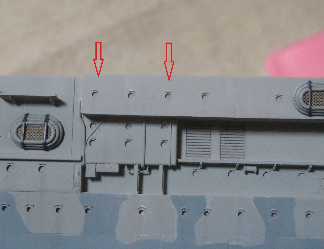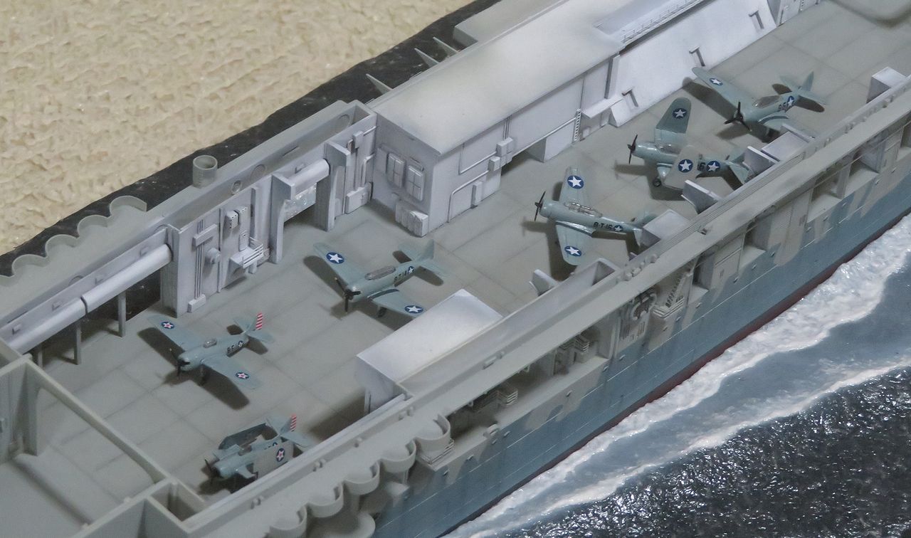 飛行甲板が乗るともっと暗くなりますのでこんなに鮮明には見えなくなりますが、光量次第ではなかなか面白い表現になると思います。