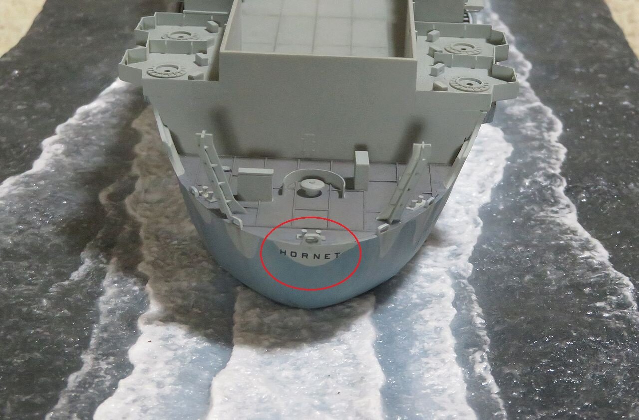 最後に艦尾に艦名「HORNET」を入れました。(赤丸部分)