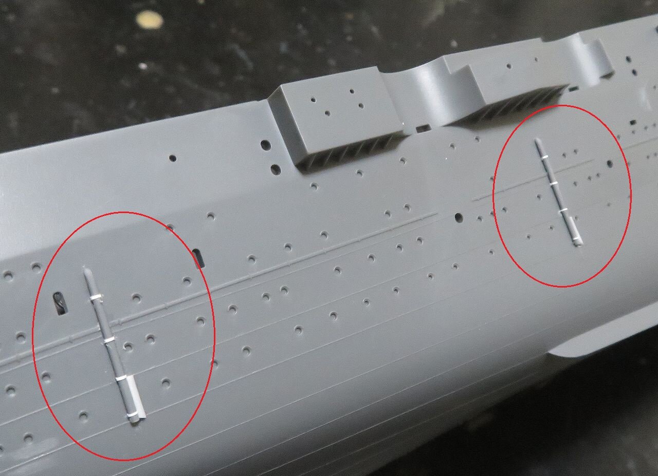 右舷前部だけで早くもこれだけの修正&追加箇所が出ていますね・・・。