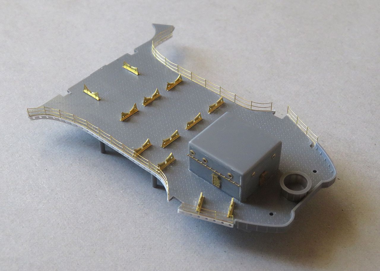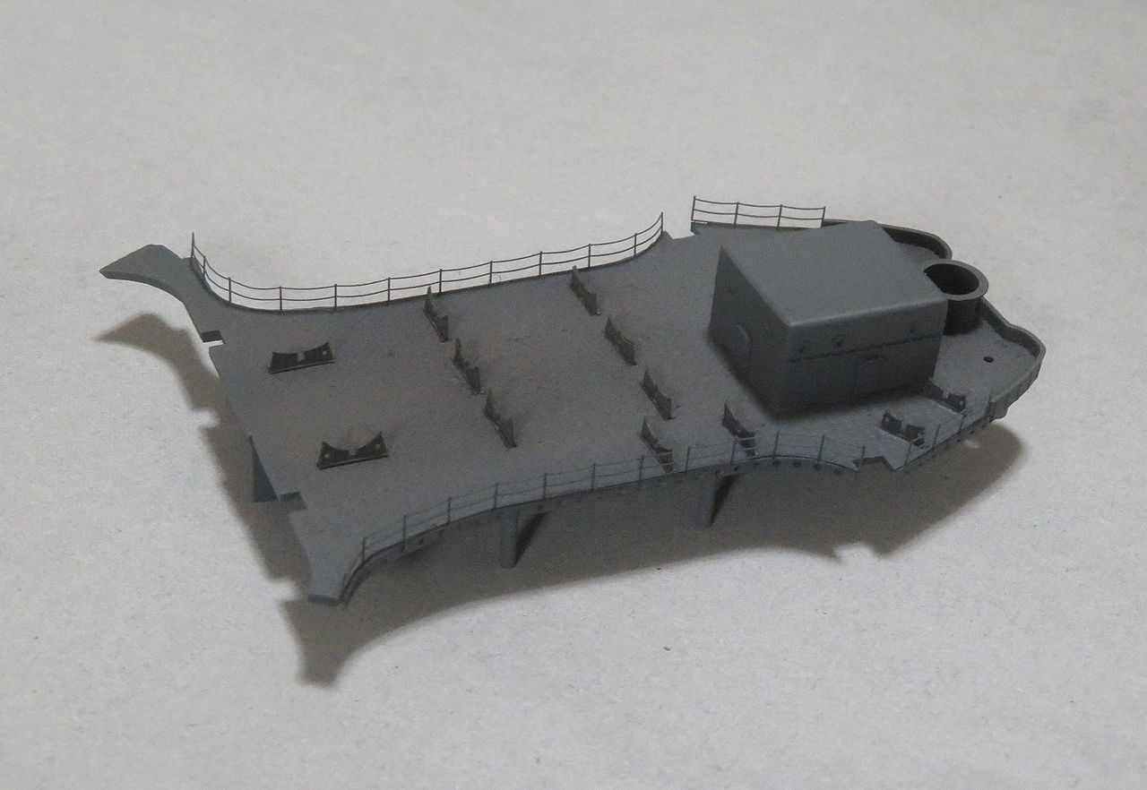 船体後半の空白部分には格納庫が乗るということで、その格納庫自体もほぼ完成しているのですが、ここには仕掛けが有りますので完成を楽しみに待ちましょう。