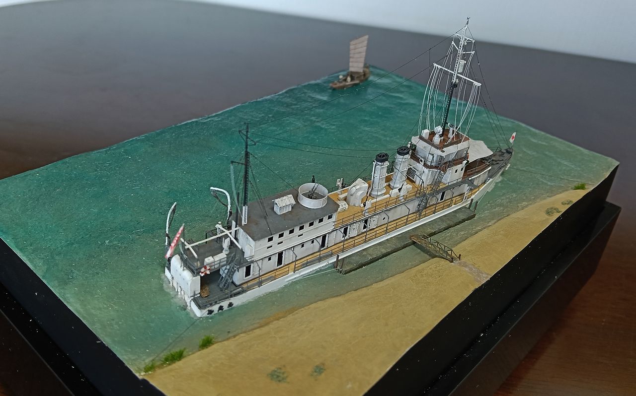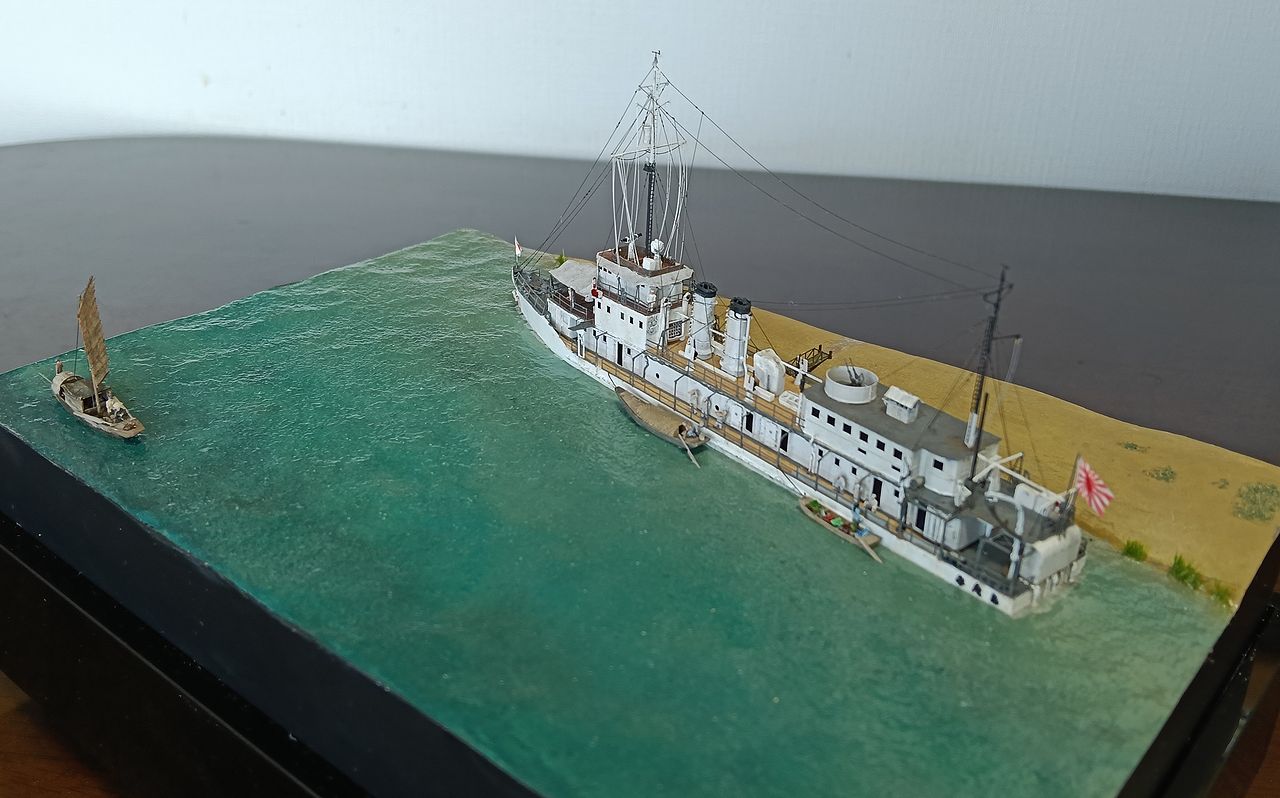 砲艦というちょっと地味な艦種、1/700並みの小さな船体、静かな水面、はがき大強くらいの小さな作品・・・なのに・・・何だ?この存在感は?(笑)。