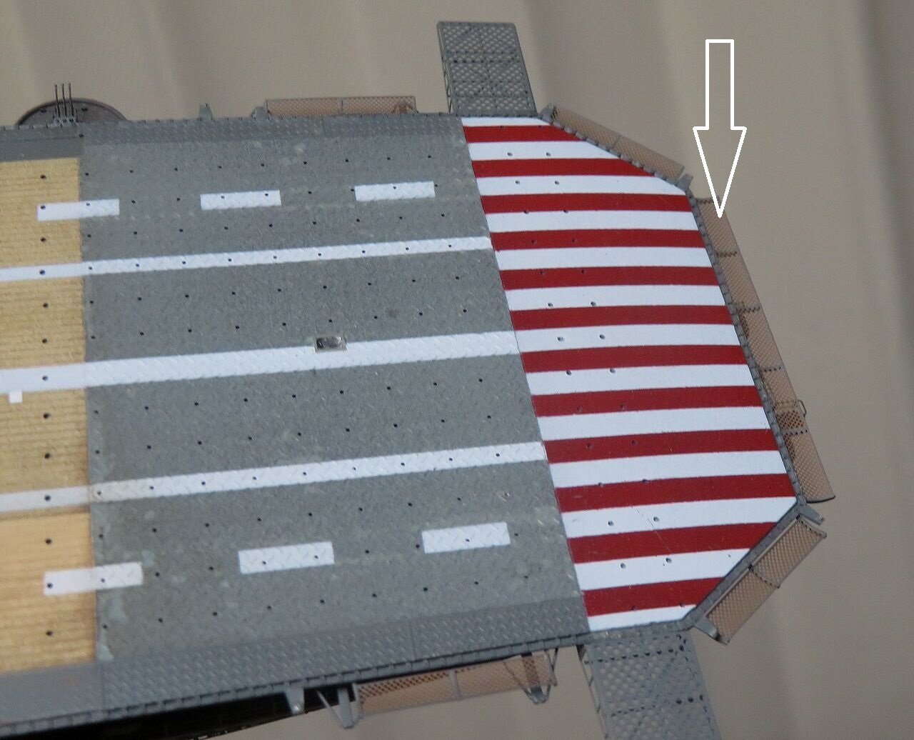 信号旗を格納する部分ですがグレー一色の軍艦の中に明るい差し色がチラリと入るだけでとても良いアクセントになります。