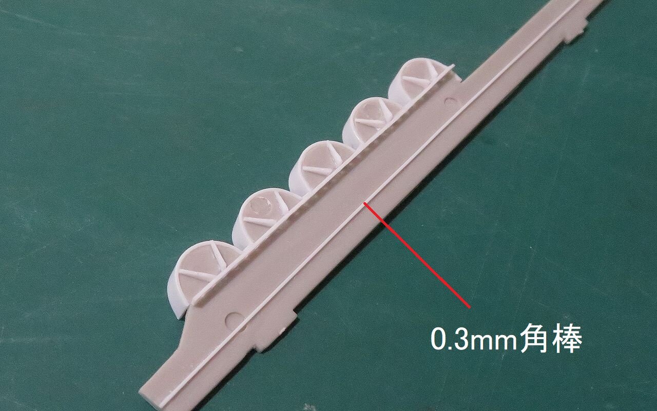 次はここに0.3mmのプラ角棒を通します。