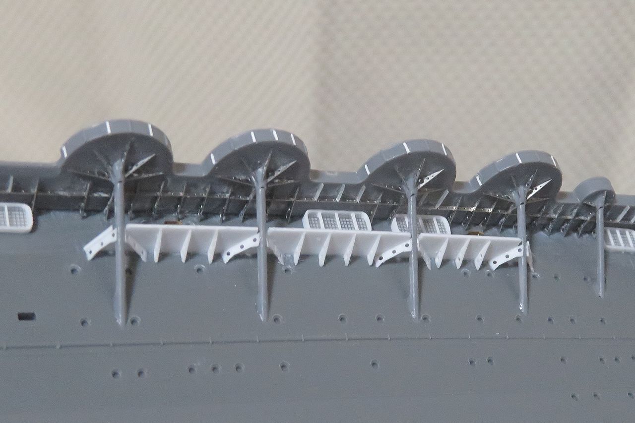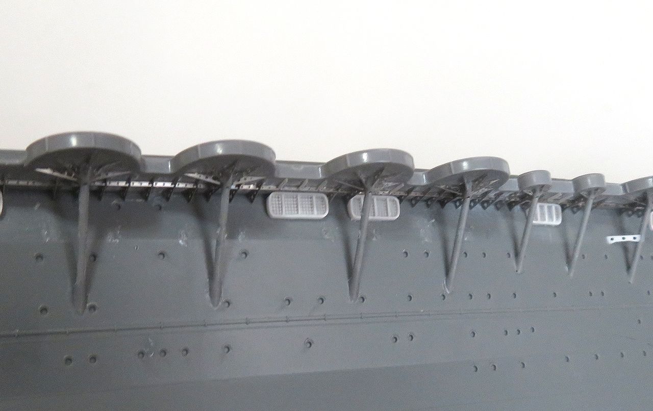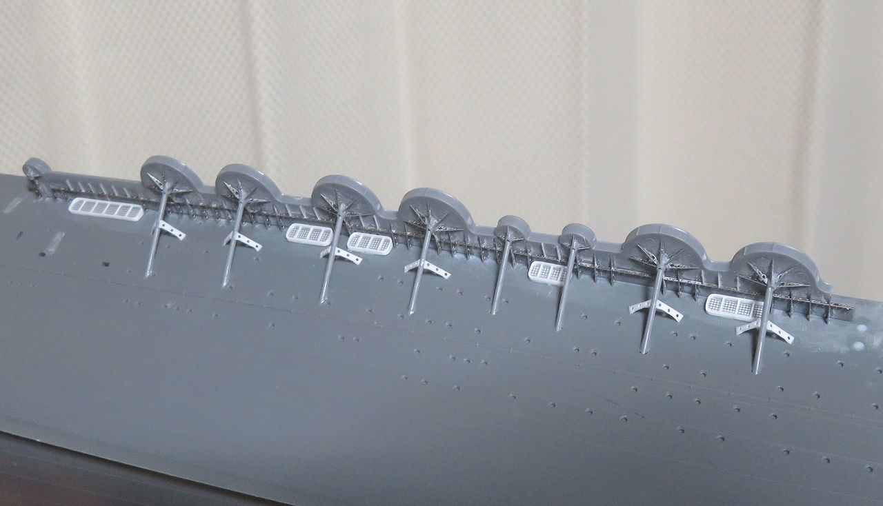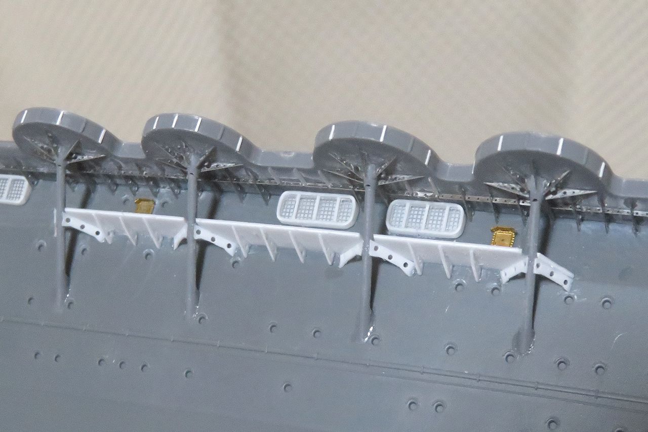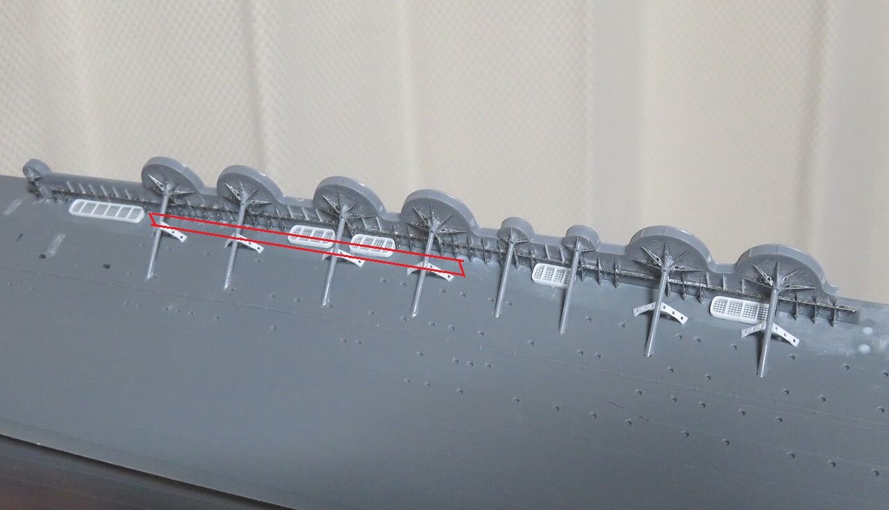 2025年03月27日 しゅ・・・修正です! お鶴さん昨日ここまで作った左舷側の機銃スポンソンですが・・・。実はこの部分(赤枠)には通路が有るということに後々ですが気付きました。そこでせっかく取り付けた穴開きの補強材ですがいったん全て取り外し(涙)。0.5mmプラ板で通路を作りました。この通路をこのようにハメ込んで・・・。ここに補強板を取り付け!!そう、これが正解のようですよ。っていうか、もう間違ってても修正しない!!(爆)人気ブログランキング参加中です。宜しければクリックお願いします。 「350瑞鶴」カテゴリの最新記事 < 前の記事次の記事 > コメント コメントフォーム 名前 コメント 記事の評価 リセット リセット 顔 星 情報を記憶 コメントを投稿する