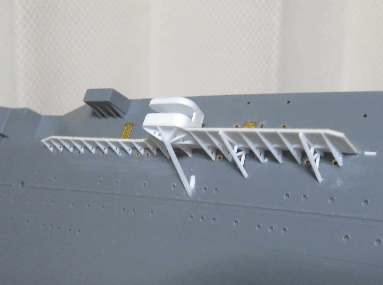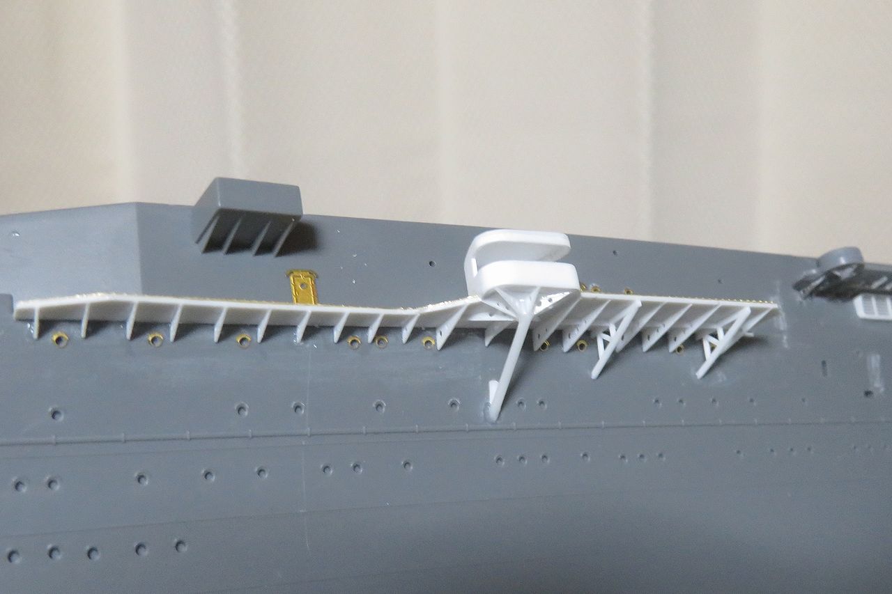 また水面見張り所も通路前端のラインより少し前に出ますので削り取ってプラ板で作り直しています。