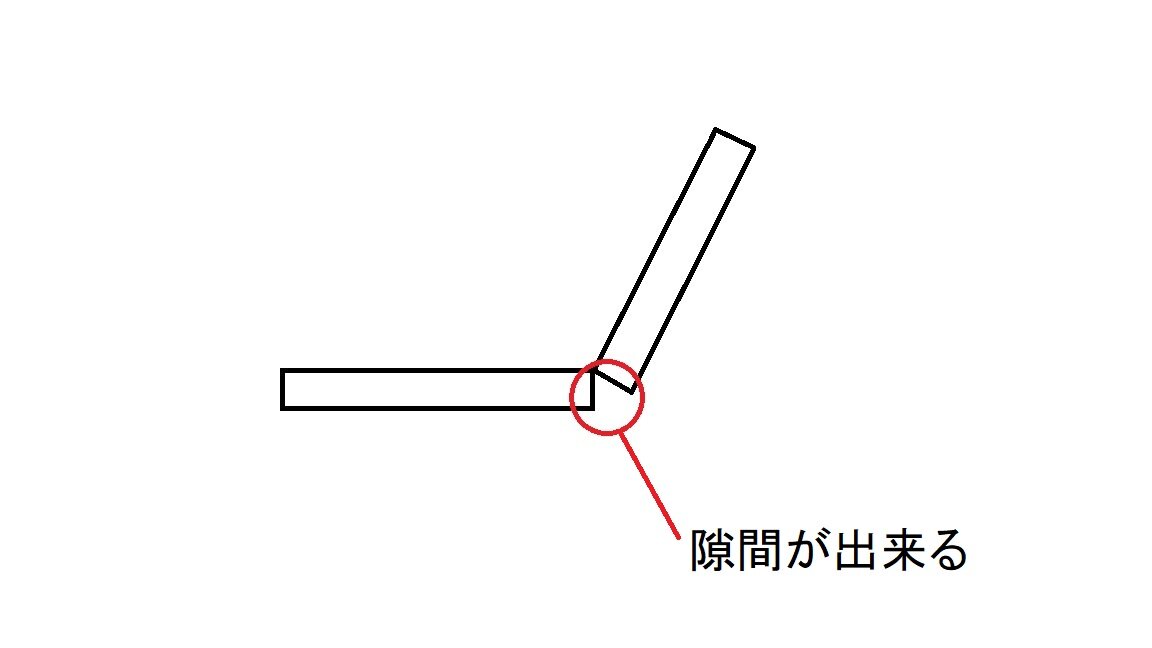 切り出したプラバンをこのように繋げようとすると赤丸部分に隙間が開きます。
