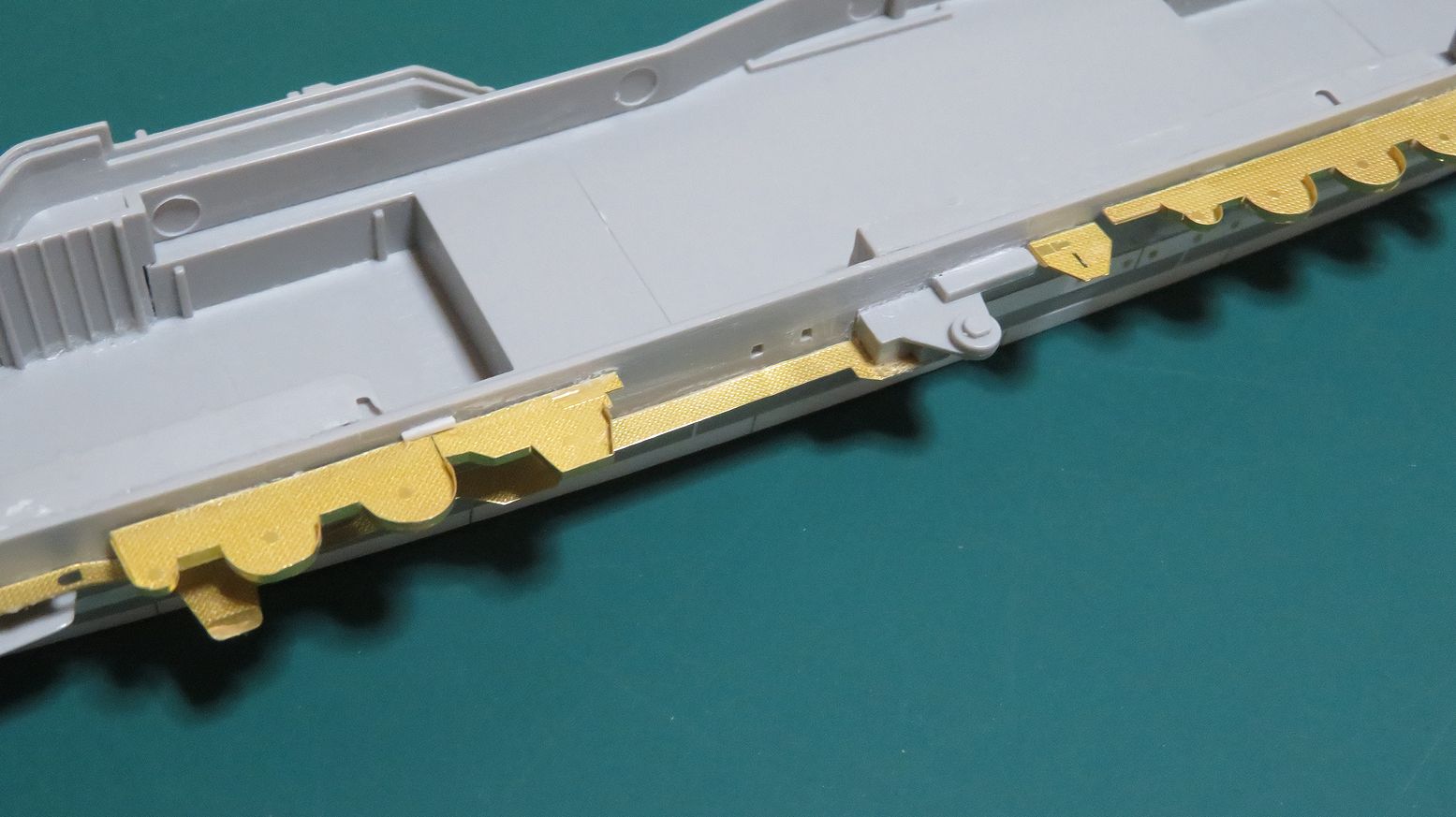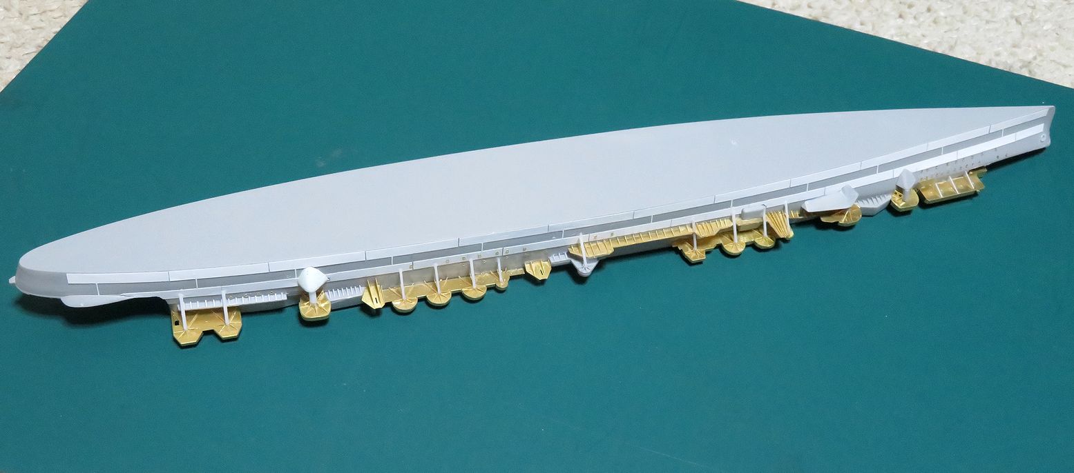 ピットロードの雲龍にフジミ専用のエッチングを強引に使う今回のチャレンジですが、やっと左舷側のエッチング取付けが完了しました。