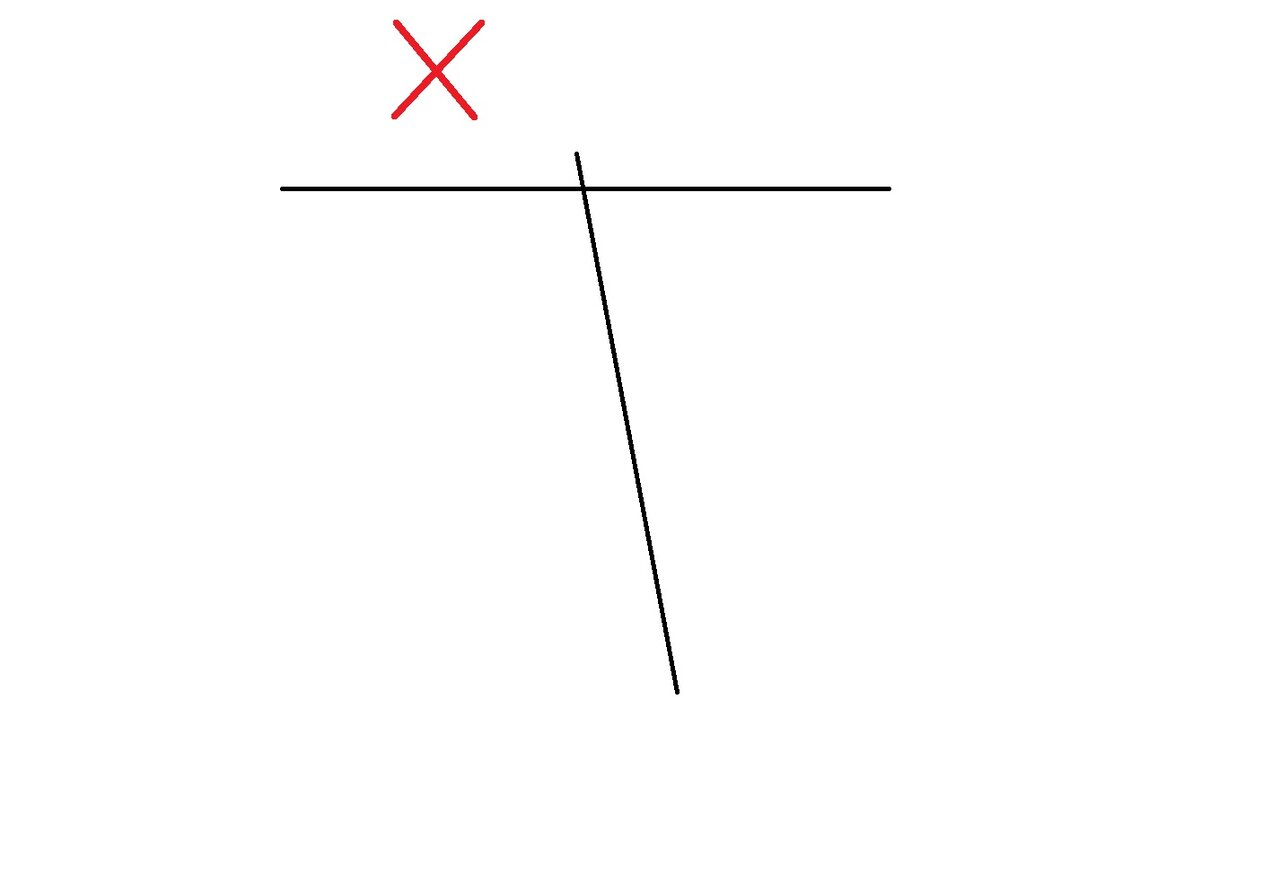 簡単な図で示しますが、このように接点がハミ出ているのはあまり良いとは言えません。