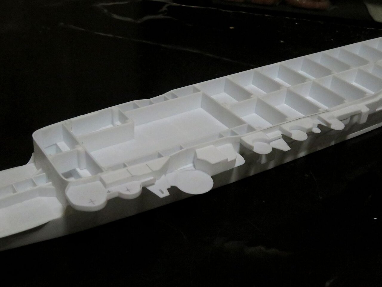 ただ他の空母よりもその情報が極めて少ないのは事実です。そのためか各大手メーカーも1/350という誤魔化しの効かない大型スケールのキットは今のところ発売に至っていません。しかし完全、完璧な図面資料を待っていたらいつまでたっても模型化できませんので有る程度資料集めも進んだところで「よし、いよいよ作ろう!」となった次第です。これが個人モデラーの強みですね(笑)。