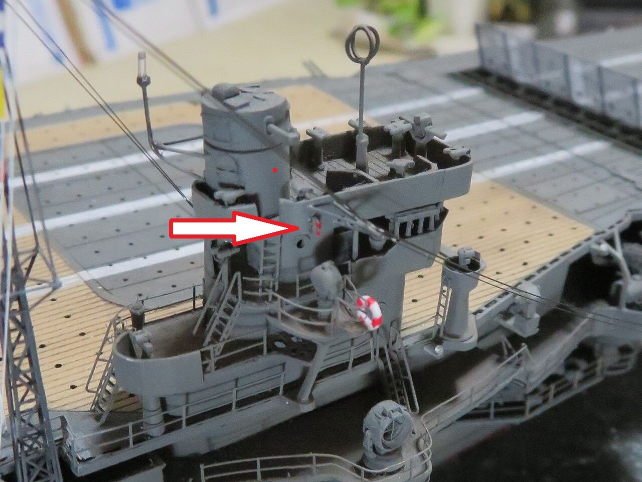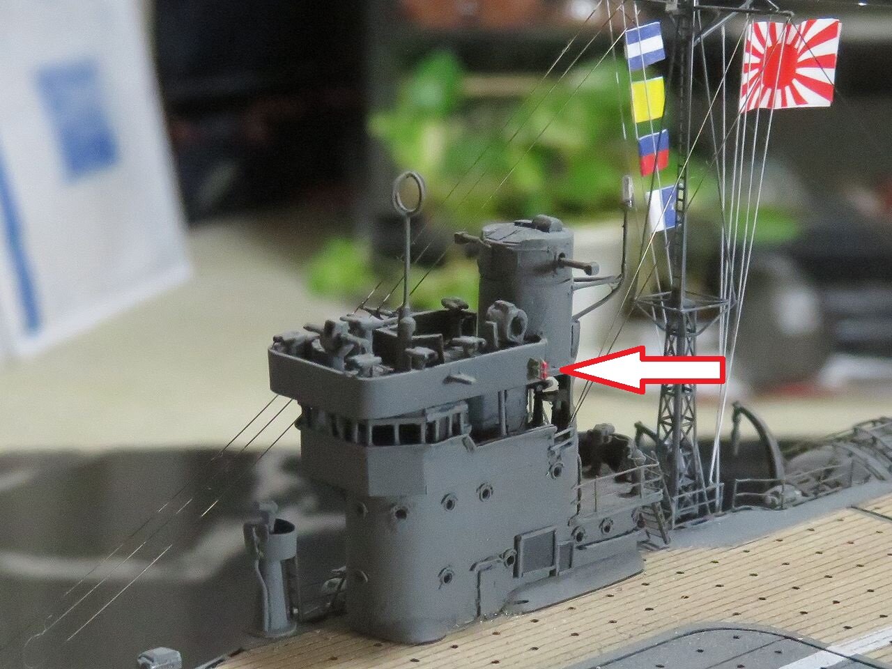 これを艦橋に取り付けるわけですが、ピンセットでちょっと強く挟むとポキっと折れてしまいますので最大級の取り扱いが求められます。