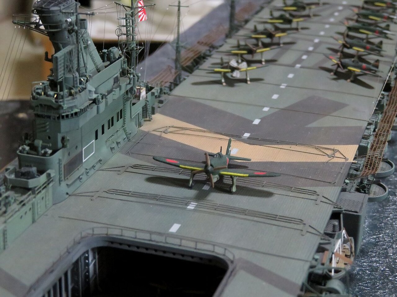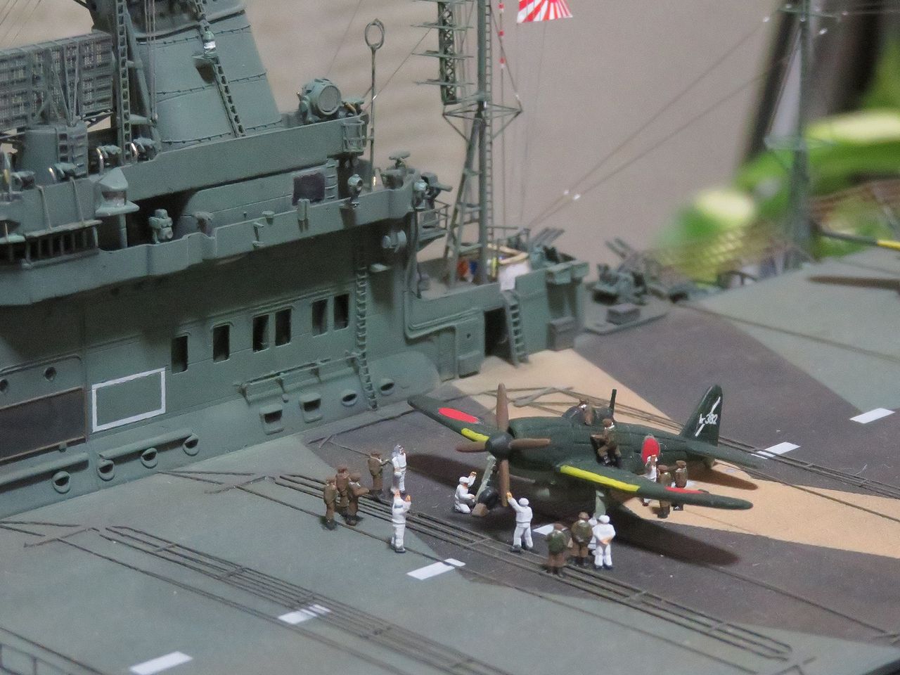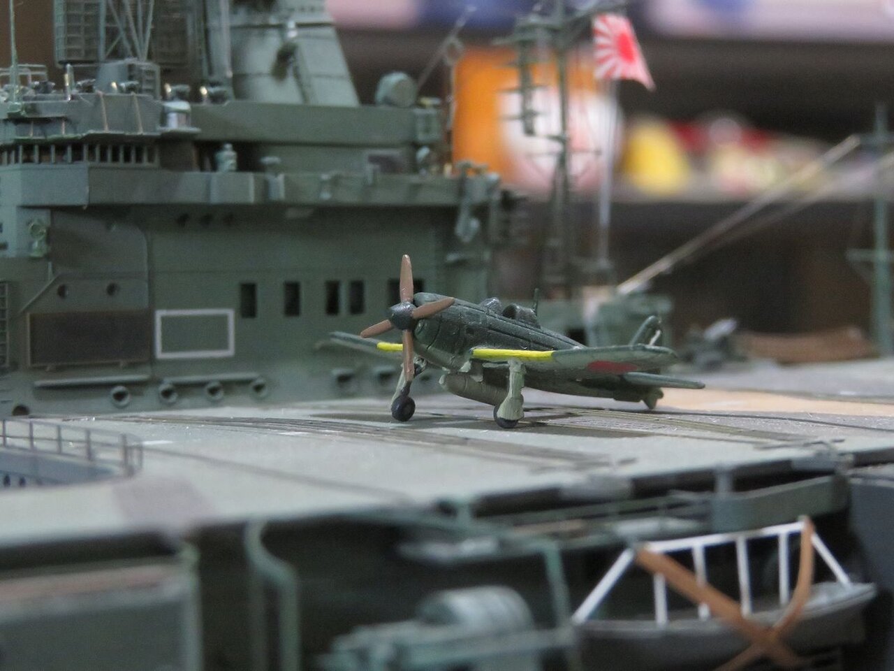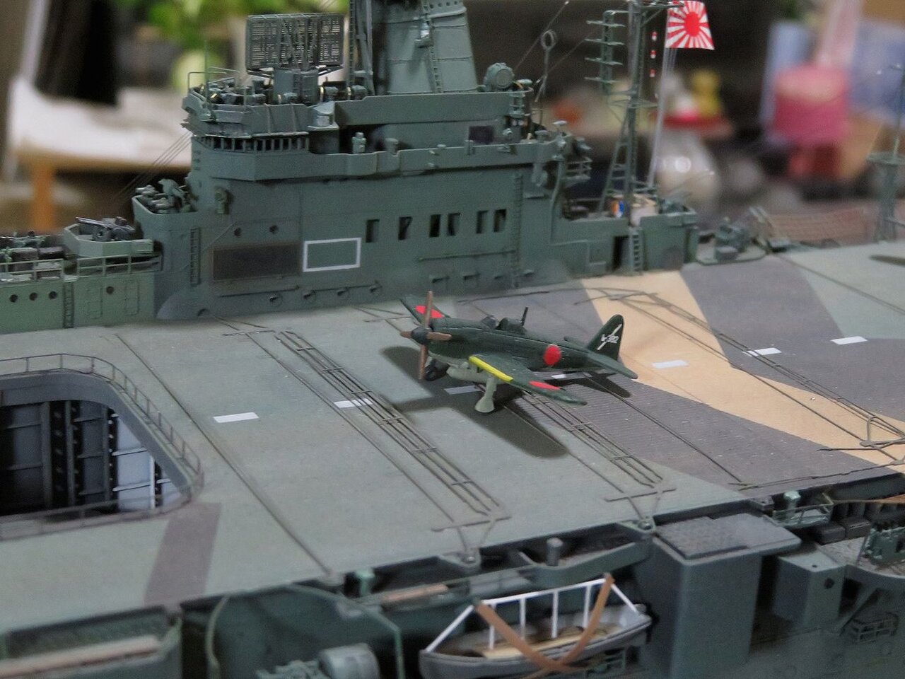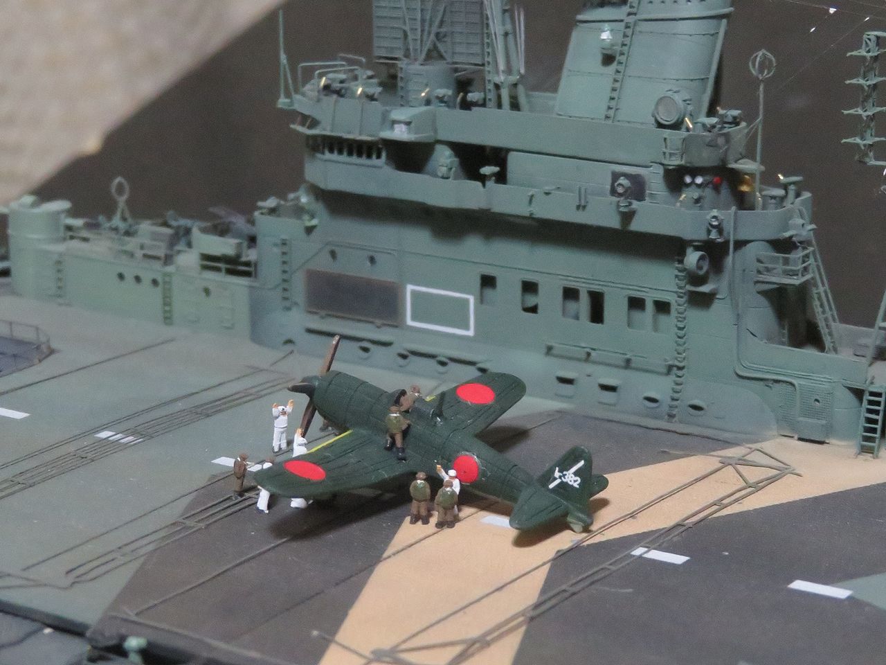 さて今日は烈風を飛行甲板上に取り付けて、その周囲に搭乗員と整備兵のフィギュアを配置しました。