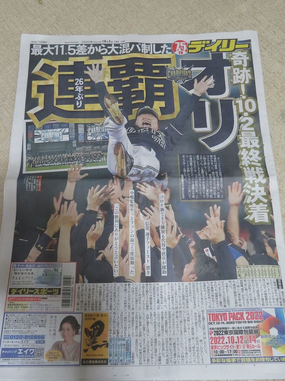 なんとシーズン最終戦でオリックスバファローズが奇跡の逆転優勝です!!