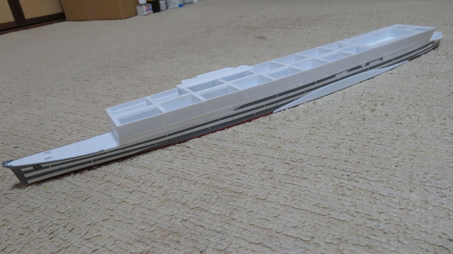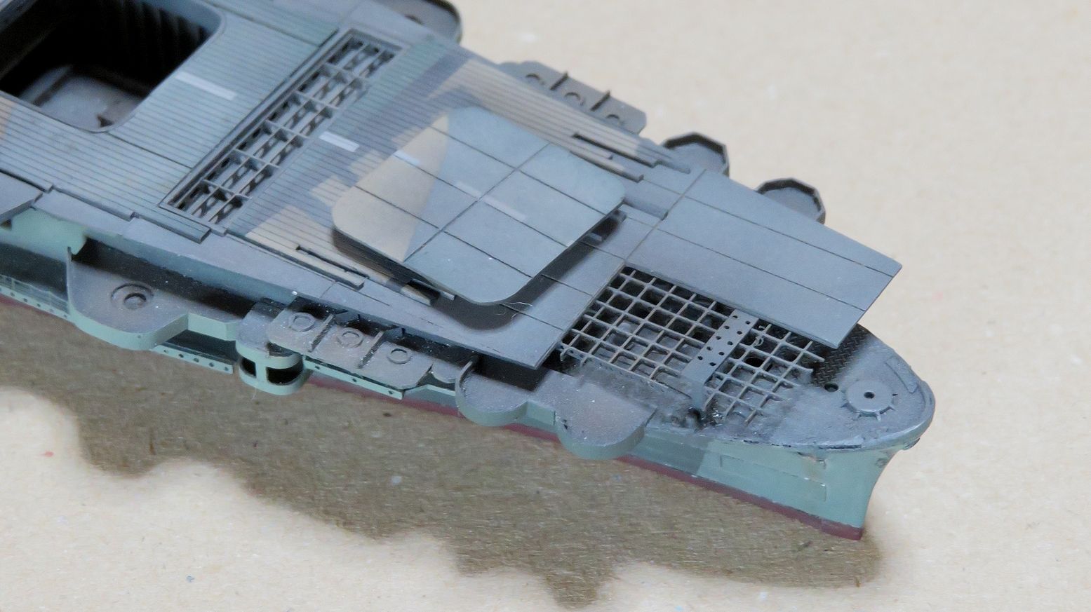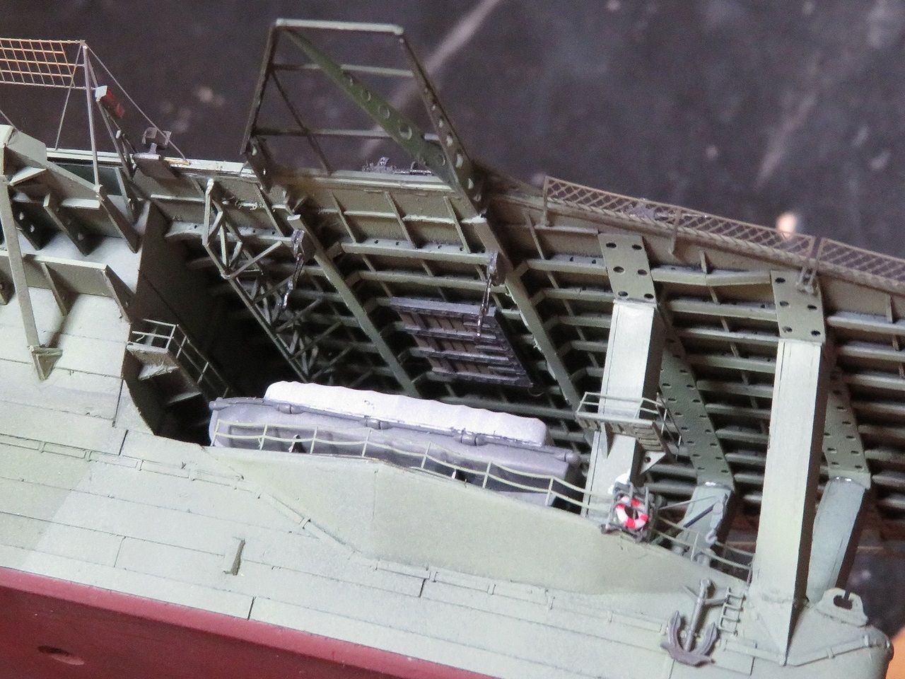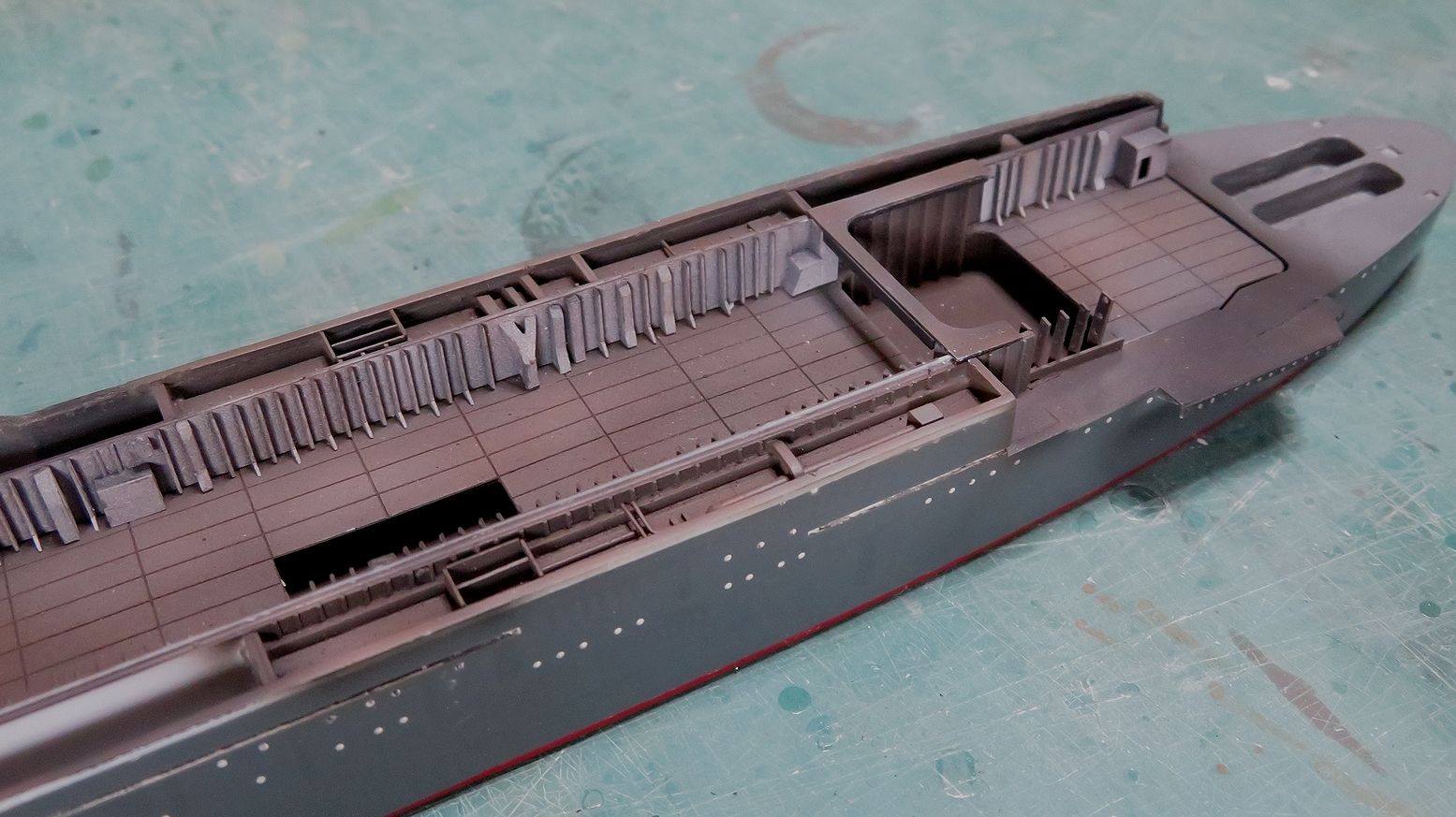 ひっぺがした飛行甲板は裏返して端の方に置いてみました。なかなか哀愁をそそりますね・・・。