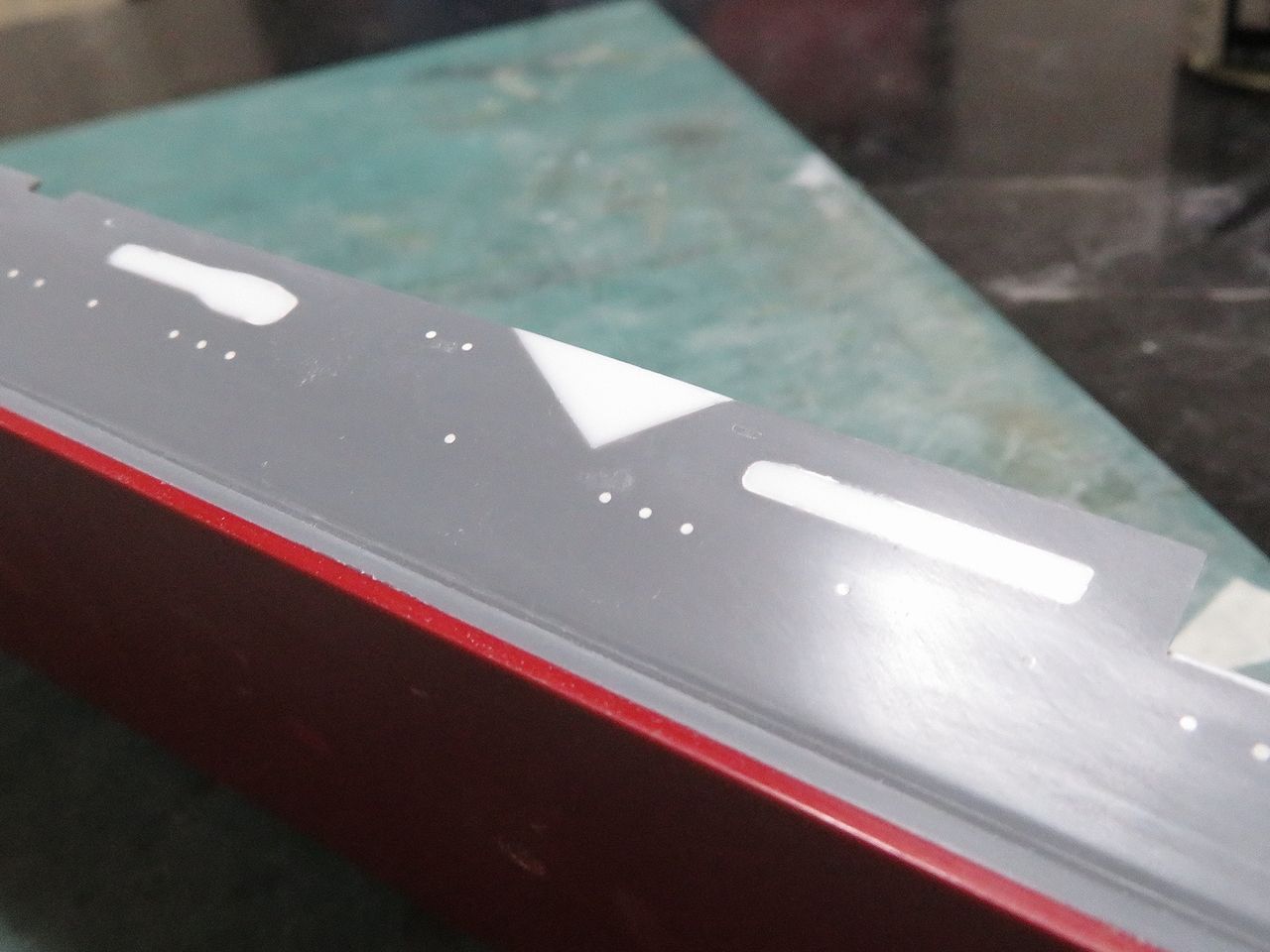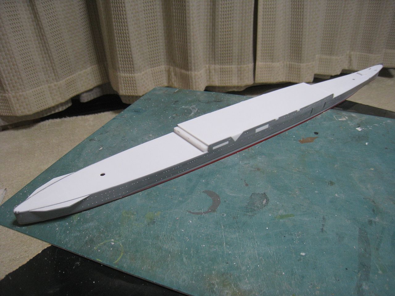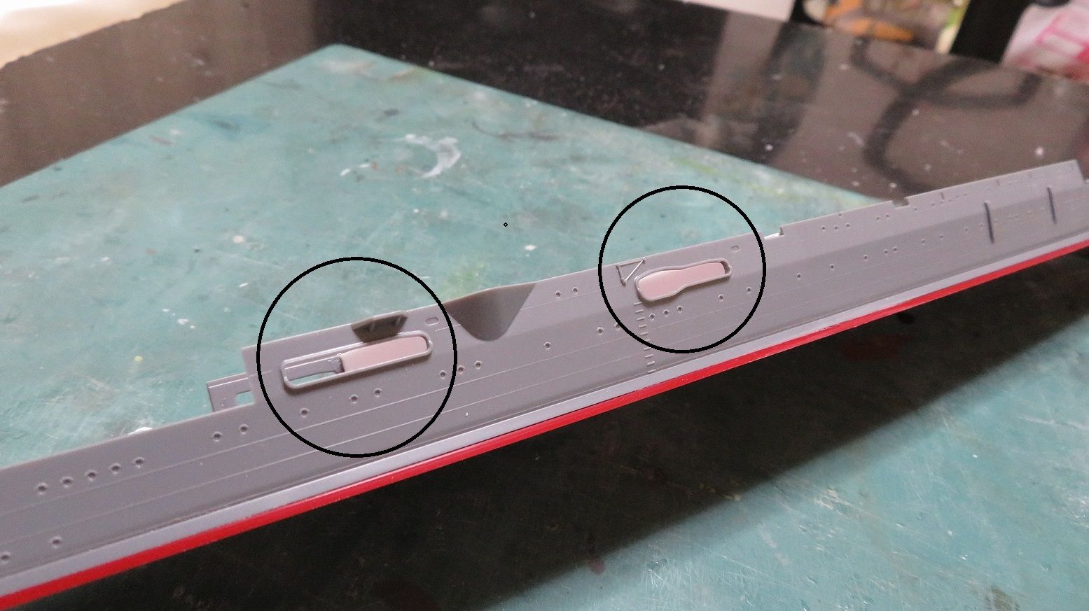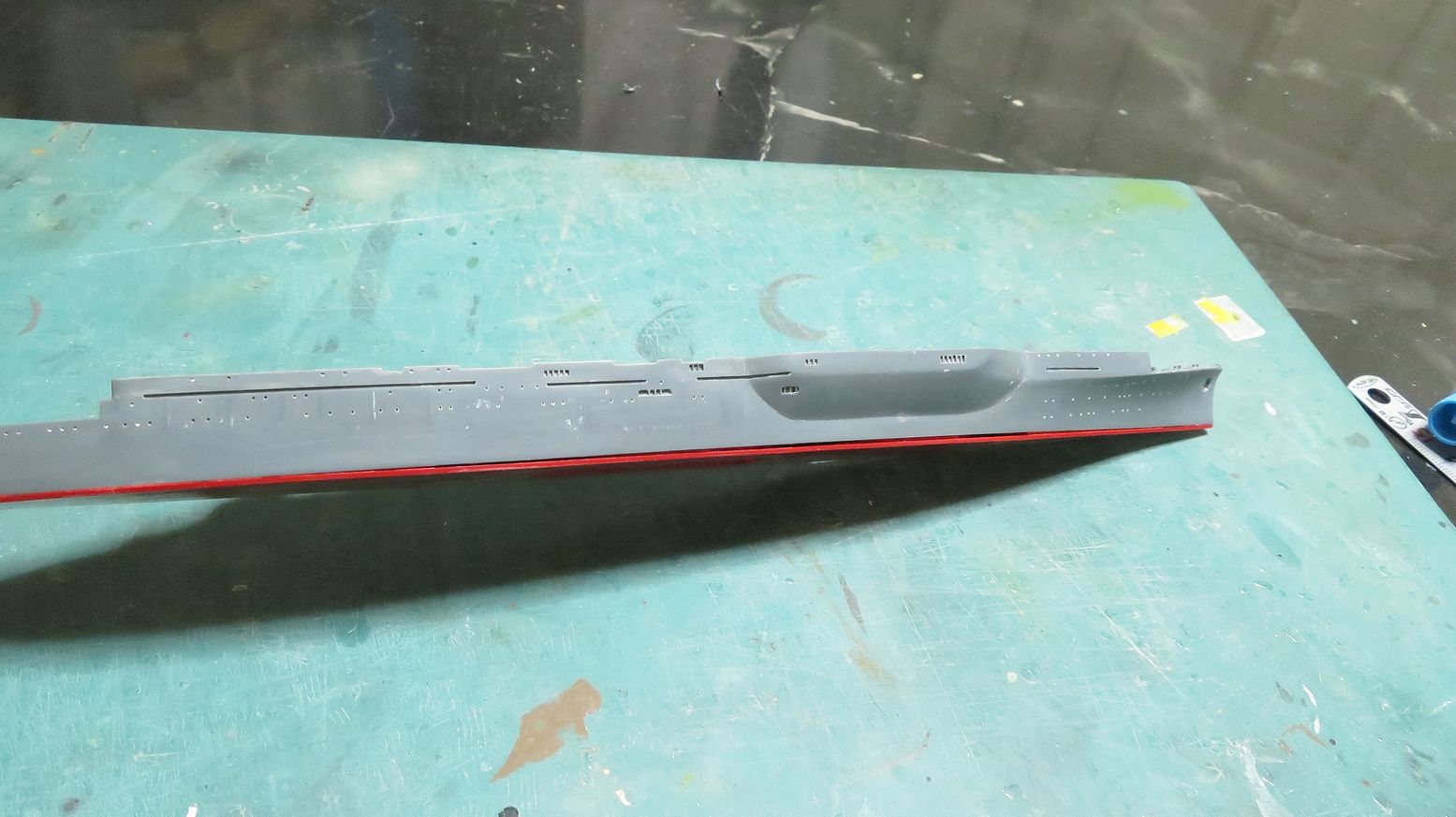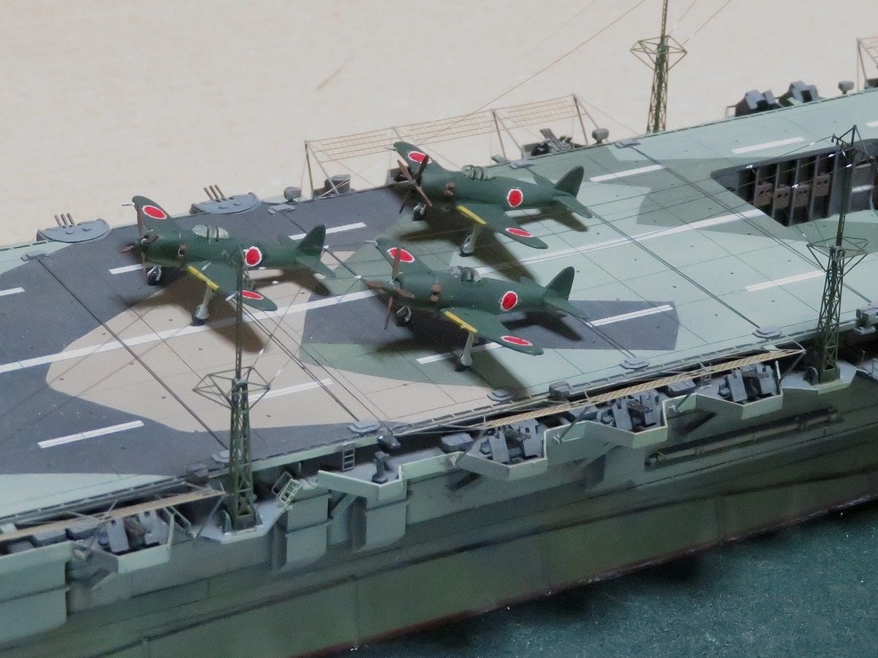 ひっぺがした飛行甲板は裏返して端の方に置いてみました。なかなか哀愁をそそりますね・・・。