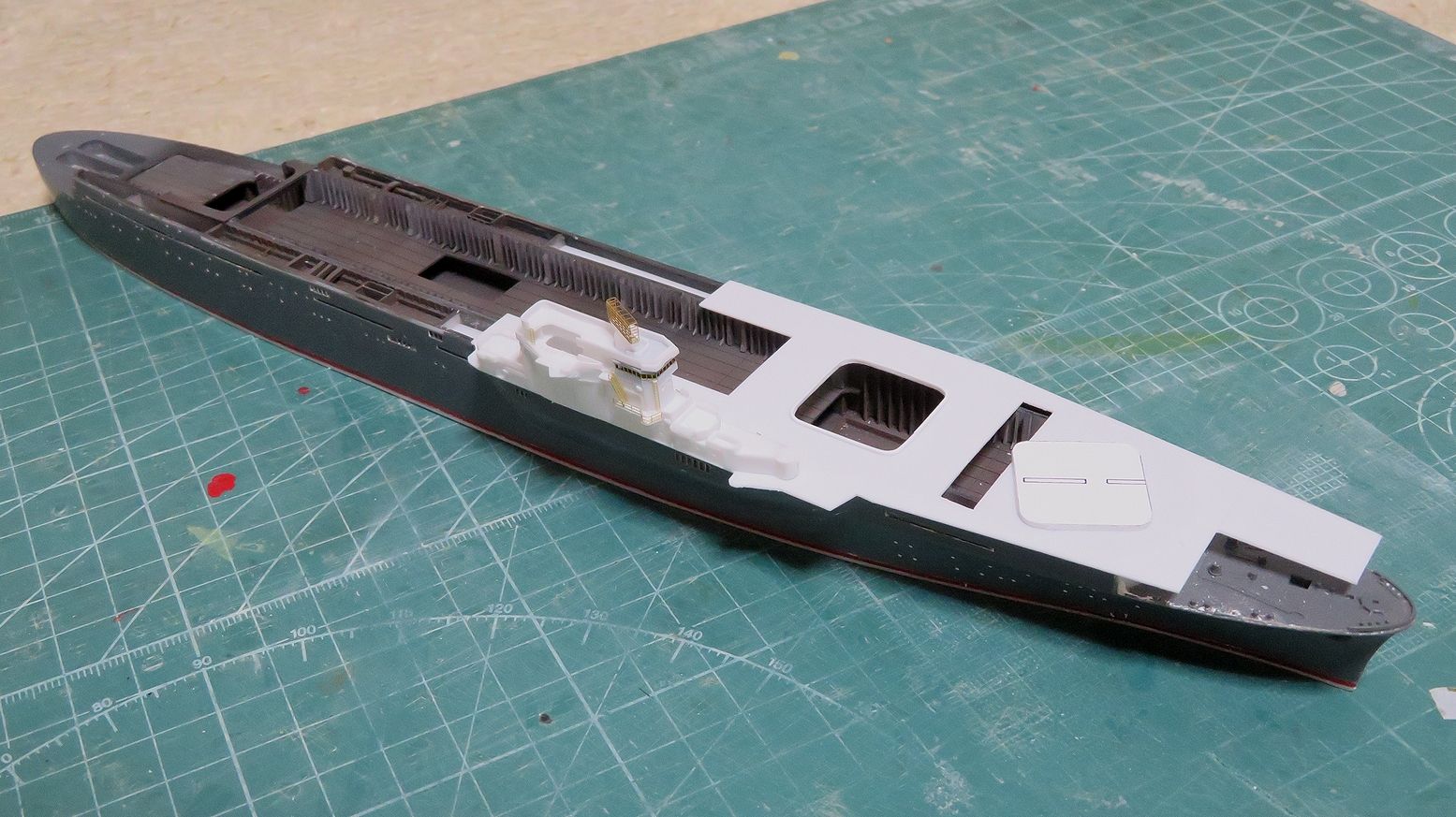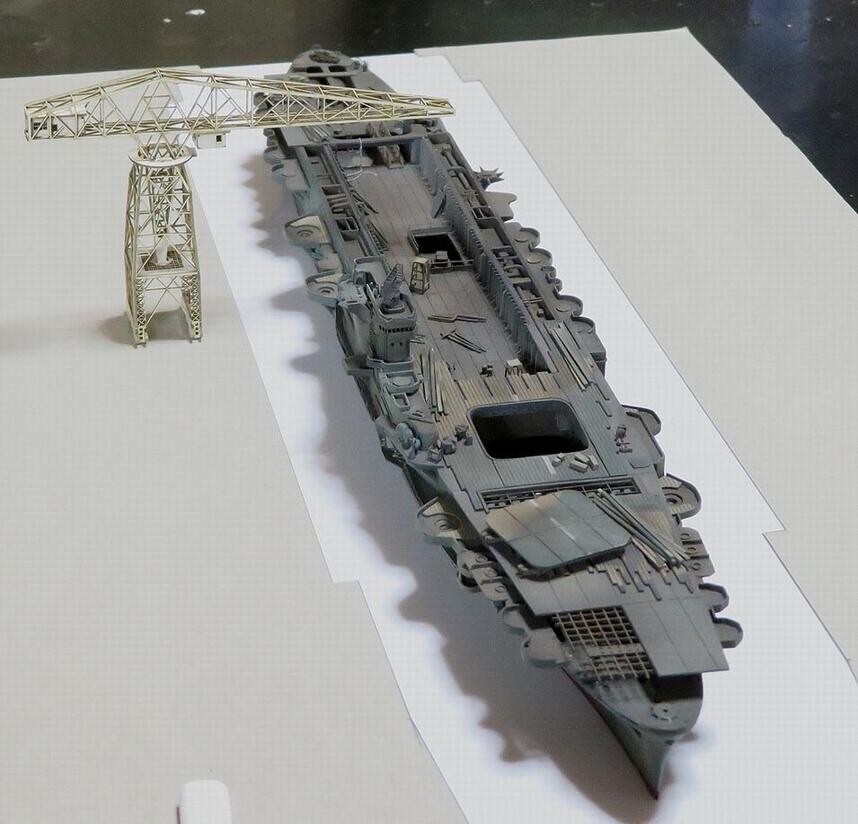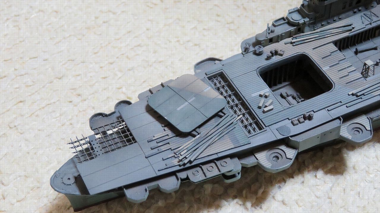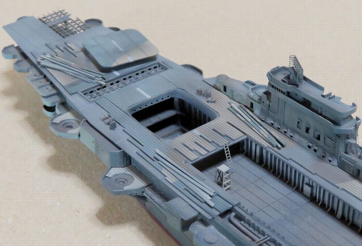 半分ほど残った飛行甲板を乗せるとこうなります。