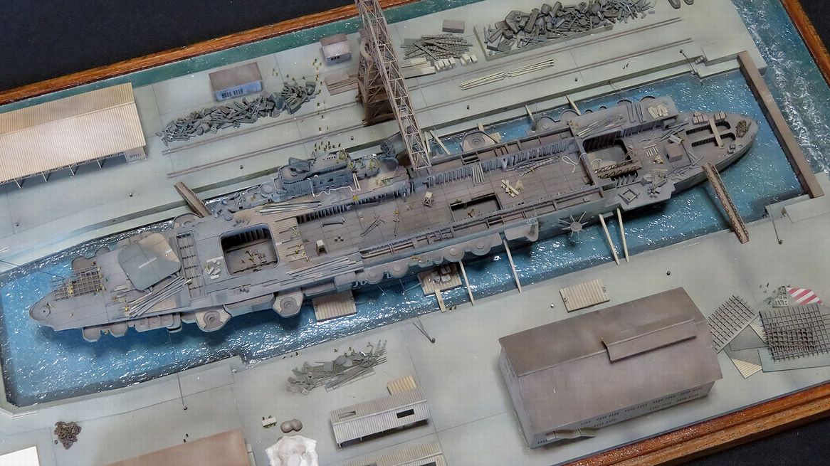 隼鷹は終戦まで生き残り、実際に解体されて除籍されました。もうこれを再現するしかない!と決めて製作をスタートしました。
