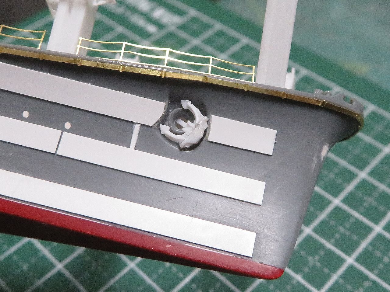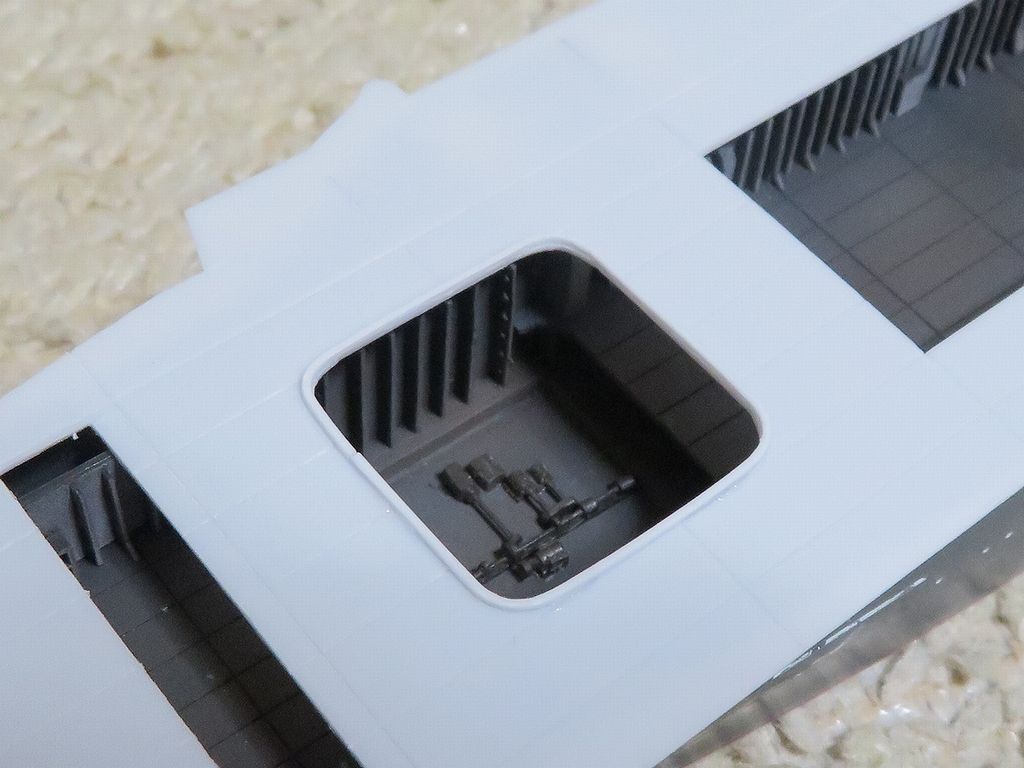 まずはキット船体のモールドや突起部分を全て落としてツルツルに仕上げます。